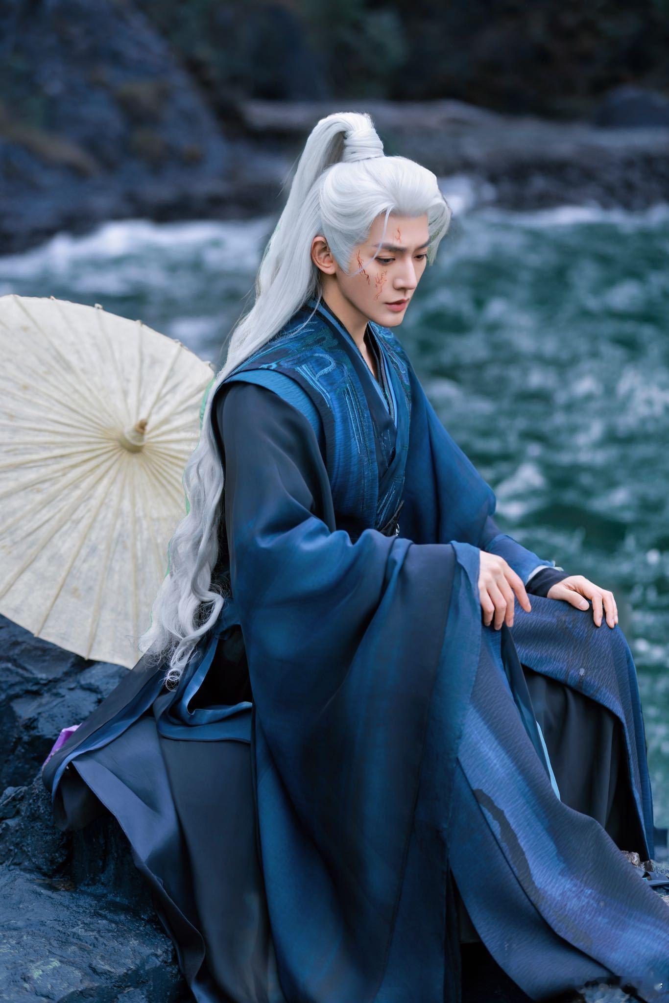 邓为白发撑伞造型家人们快来看,邓为白发撑伞造型,清冷感拉满,又帅又虐,我已经开