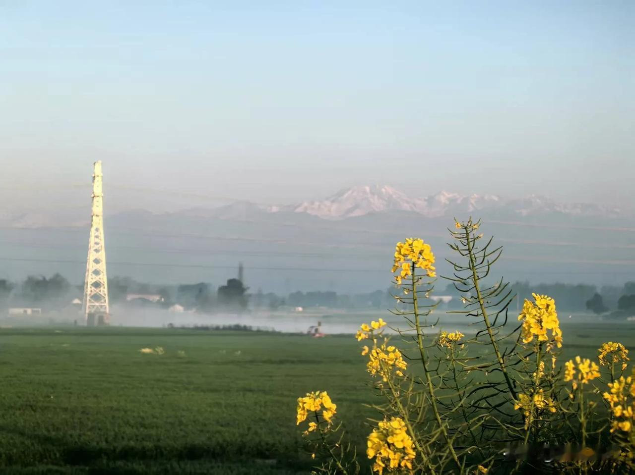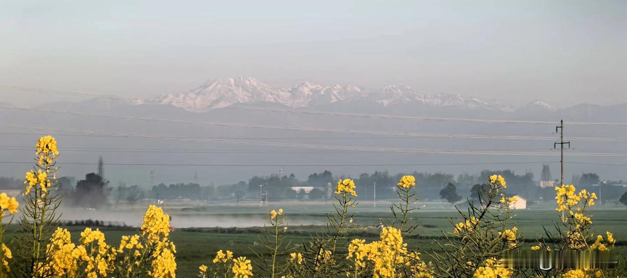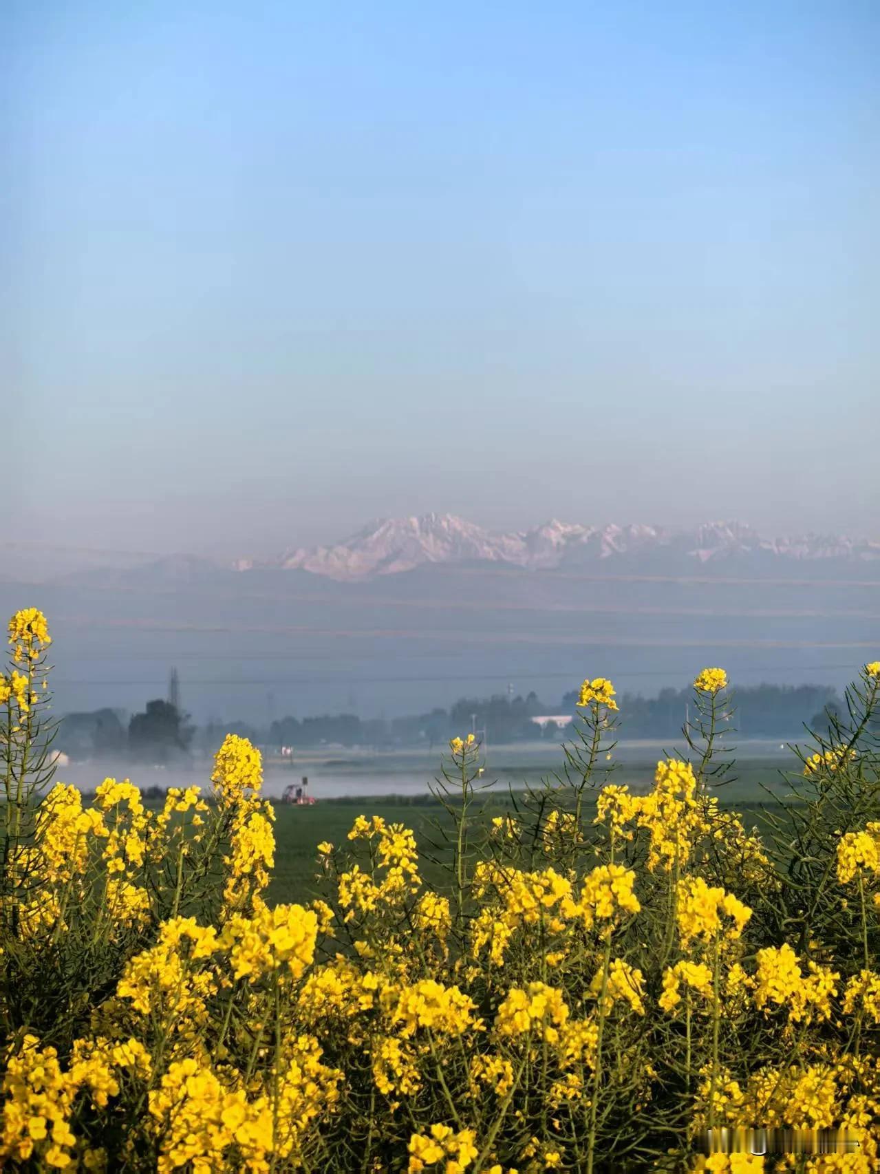 2025.03.25 成都平原晨曦田园风光。 远山如黛,田野似画,被薄薄的轻雾笼罩着,日光倾泻而下,沐浴着万物,它们渐渐复苏。 油菜花依然灿烂,远处的雪山明亮,一切都美好的。祝愿各位今天顺顺利利。沿途盛开成都