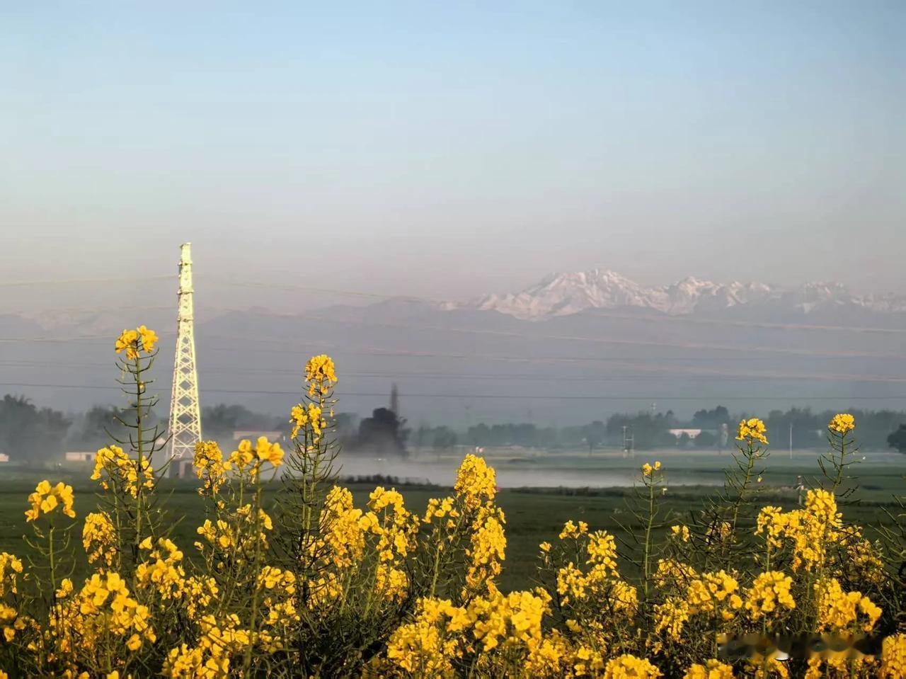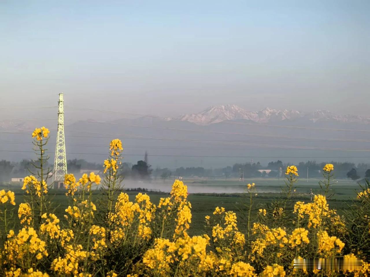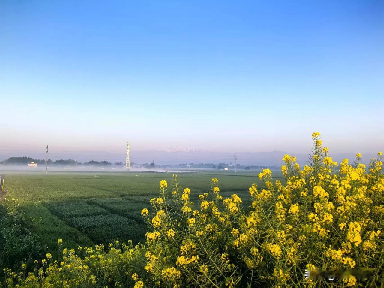 2025.03.25 成都平原晨曦田园风光。 远山如黛,田野似画,被薄薄的轻雾笼罩着,日光倾泻而下,沐浴着万物,它们渐渐复苏。 油菜花依然灿烂,远处的雪山明亮,一切都美好的。祝愿各位今天顺顺利利。沿途盛开成都