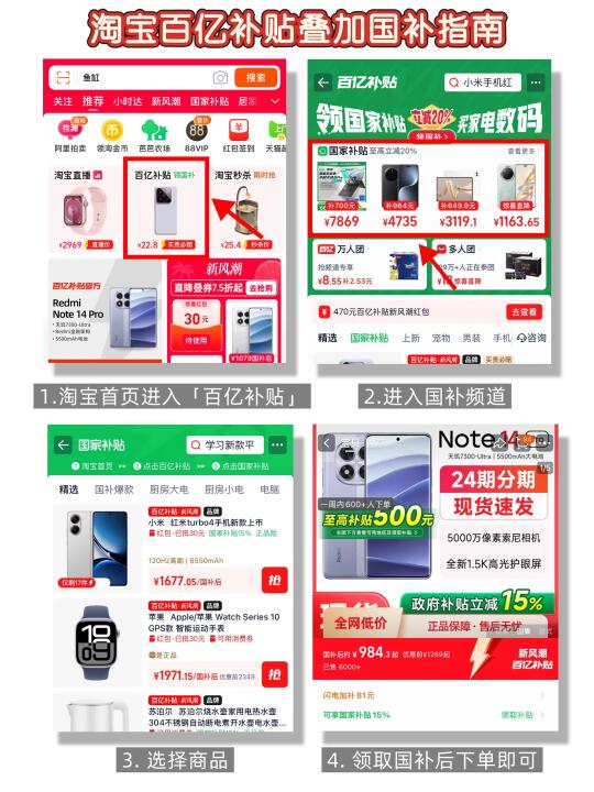 1️⃣红米Note14Pro原价 1399,叠加淘宝百亿补贴和国家补贴的双重优惠之后,只要 984!下单立省 415!