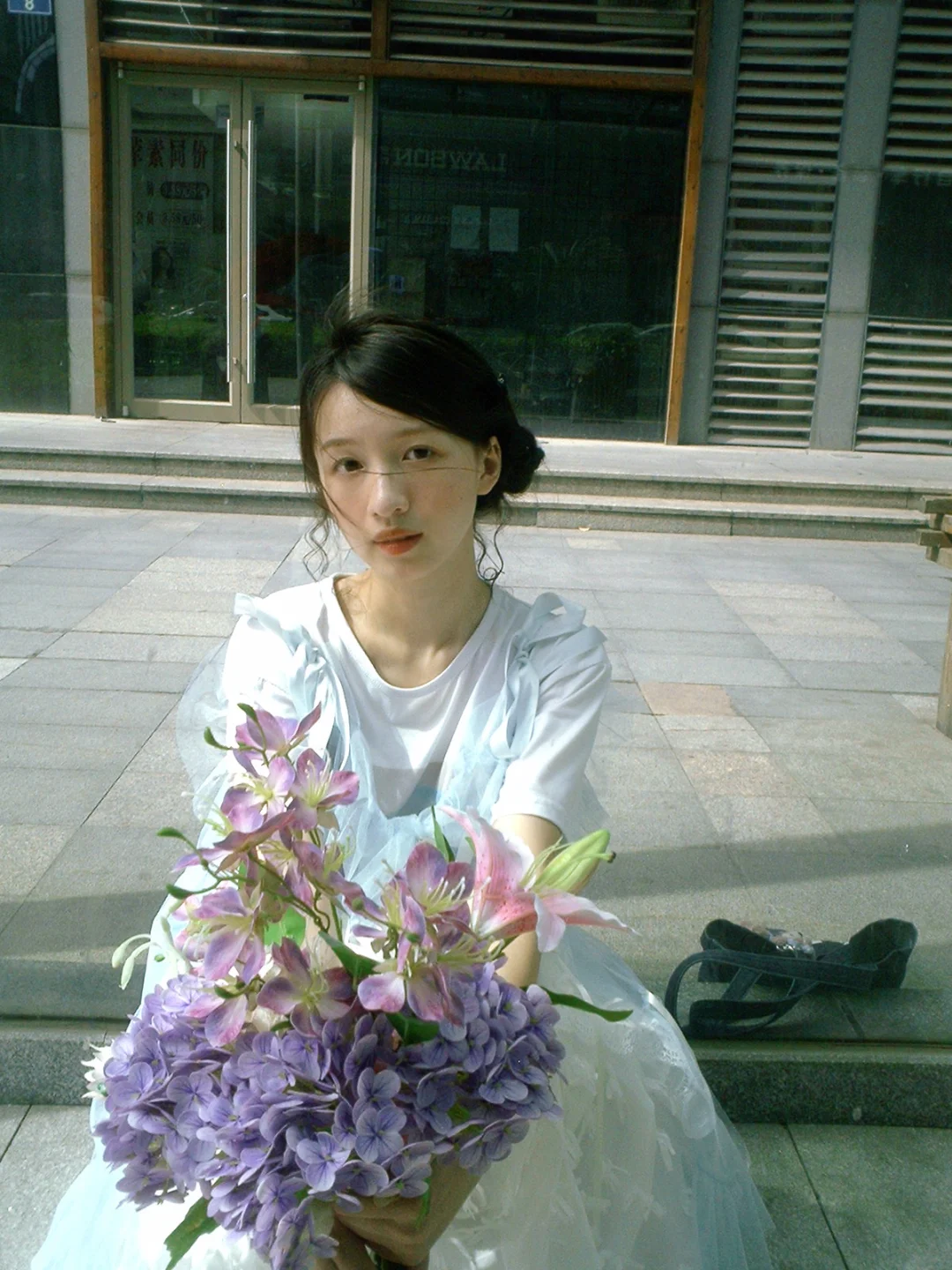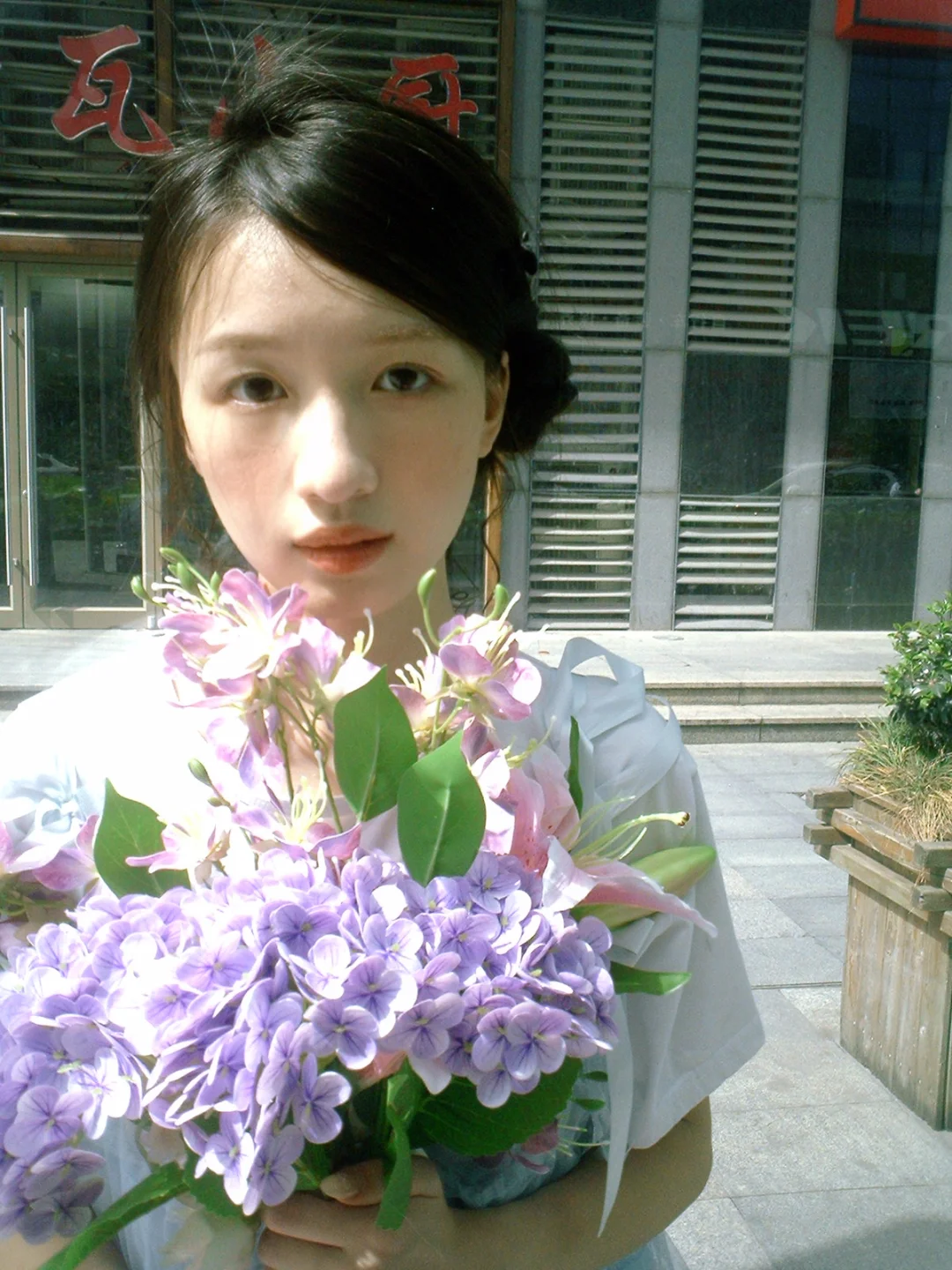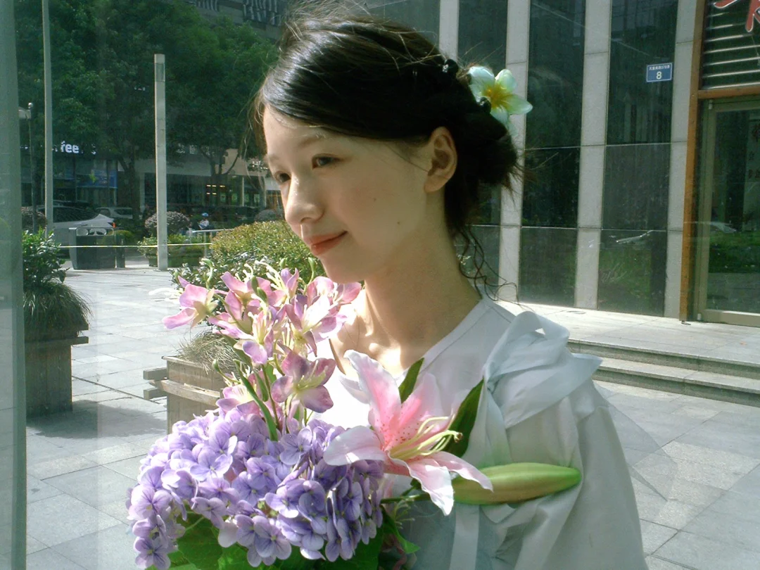 -拿着比真花还真的假花漫步在阳光下