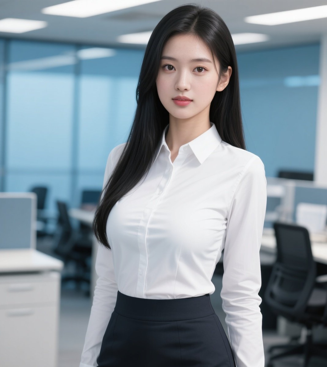 包臀裙舞步生香,衬衫轻拢玉肌光