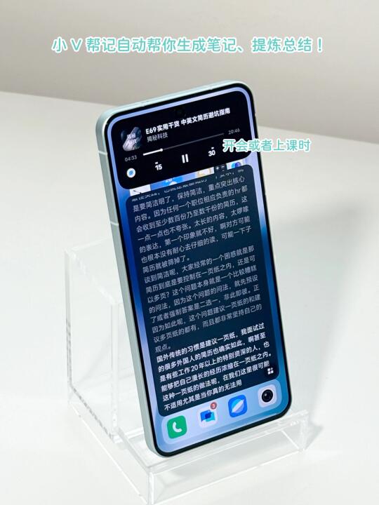 [仙女R]首先是小 V 帮记功能,上课或者开会的时候开启,它会自动帮你生成笔记、提炼总结,就像拥有了一位智能秘书,真的很方便!
