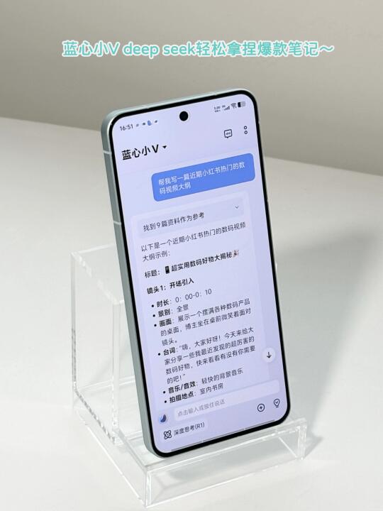 😎写稿卡壳时,就用蓝心小V deep seek,直接帮我梳理逻辑,生成灵感关键词,最后再用它优化润色,爆款稿件就这样轻松拿捏~真的效率拉满。