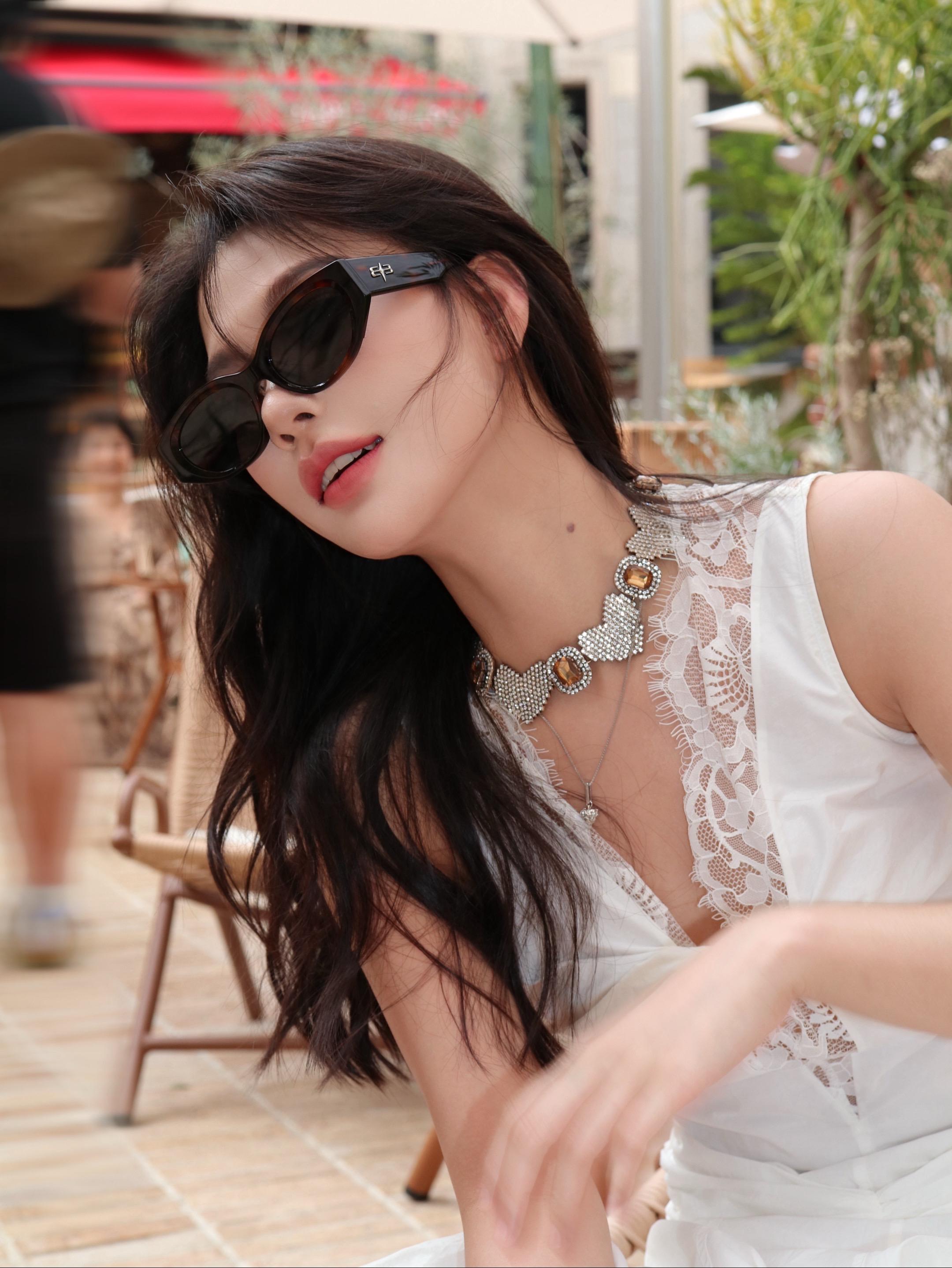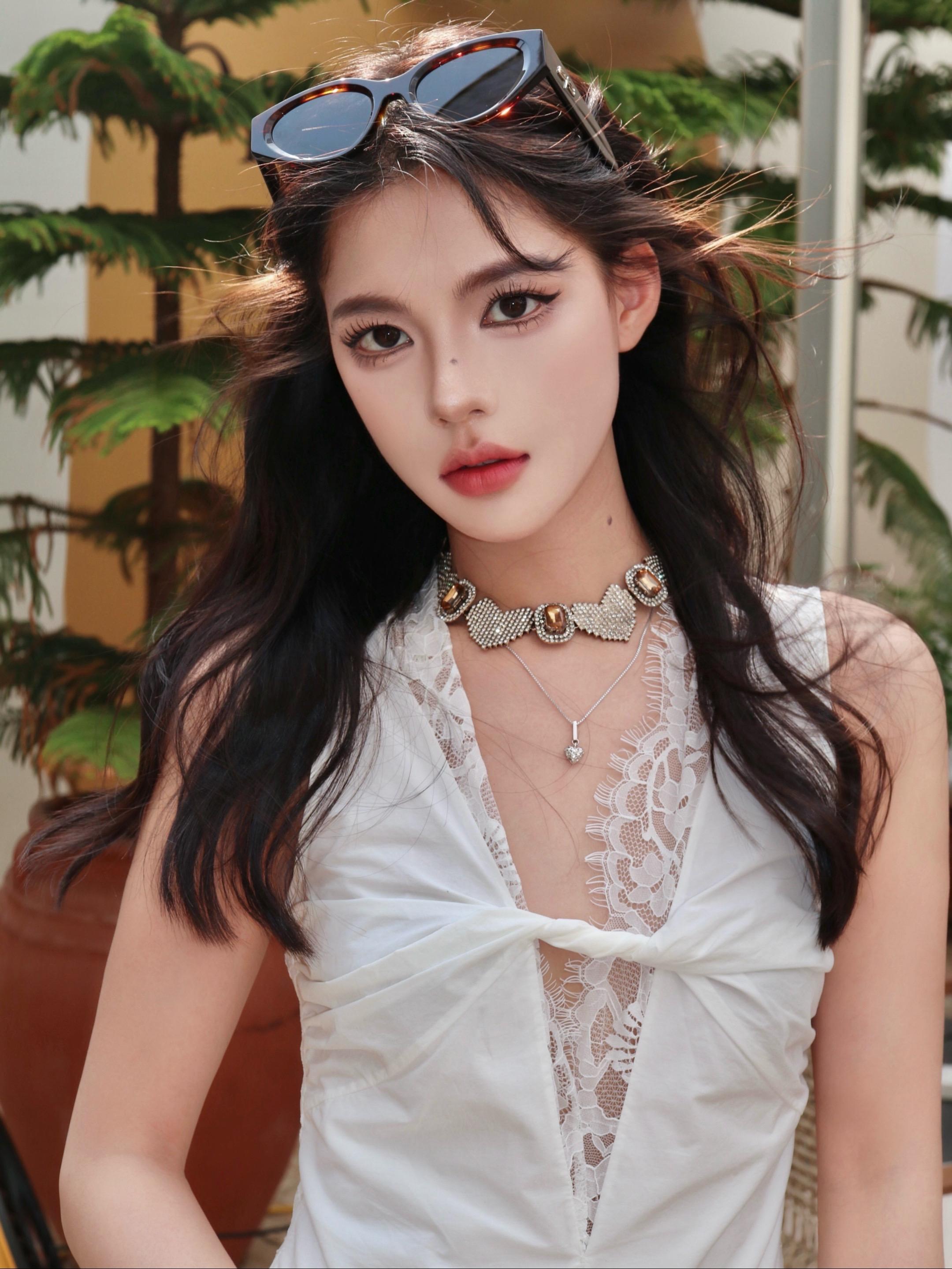 张予曦,白色镂空蕾丝裙,清新大气