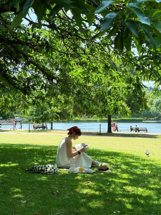 果然逛公园才是正经事儿~ 伦敦这几天的天气很好, 太阳晒着有点热,但是在树荫下很凉快, 躺在公园草地上,吹着风很舒适, 在咖啡店买了份三文鱼沙拉🥗和咖啡☕️ 吃完就躺着, 醒了继续逛, 公园里有很多买冰淇淋的, 我买了支海盐味的🍦 一整天慢悠悠的很