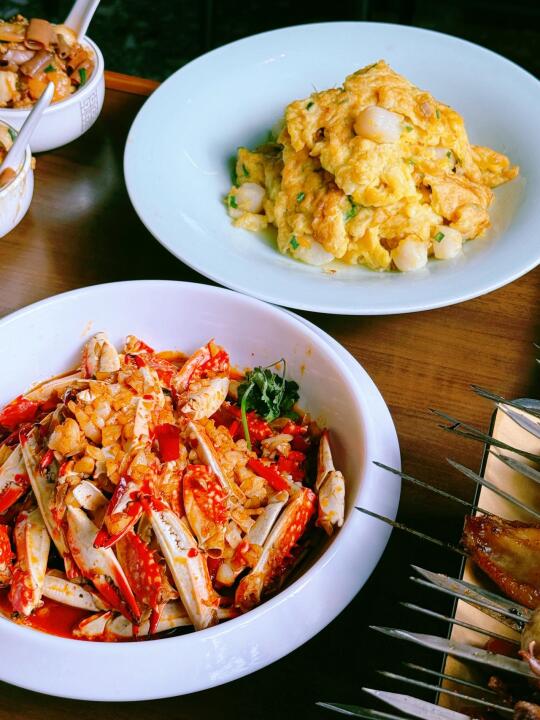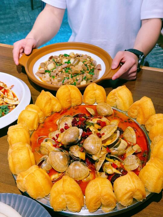 😋乞老板的海鲜大杂烩都是现捞现蒸,主打的就是一个字“鲜”,更绝的是黄金海胆-鲜甜的味道充满口腔,幸福感爆表。海肠捞饭粒粒分明,酱汁浓郁,海肠脆爽份量十足。甜麻肥蛤好吃到边斯哈边往嘴里炫,鲜甜麻辣一口一个停不下来~~