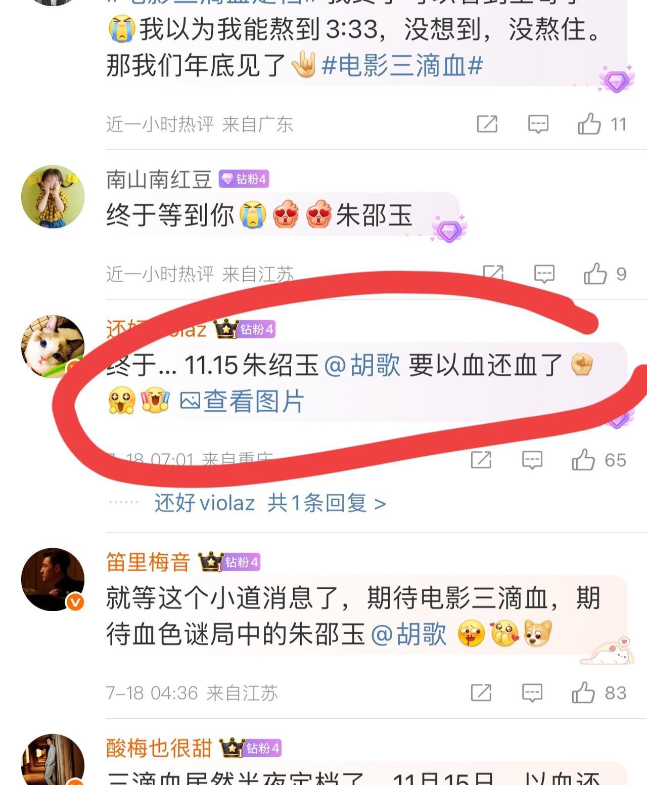 胡歌你变了 再也不是大家心中那个憨憨耿直的“李逍遥”了! 值得胡歌这么大张旗鼓半夜爬起来发文的,是他主演的电影三滴血终于定档了! 瞬间引来一大批“夜猫子”网友们的围观!纷纷表示:终于等来定档了,必看啊!更有网友夸张表示:朱绍玉(胡歌饰演)终于来了,要以血还血了……