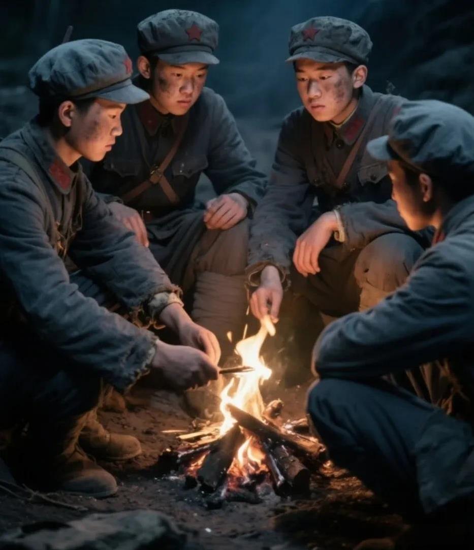 1937年,西路军耿万福带着几个战士冒险生起了篝火。突然,一个小战士从黑暗中冒出