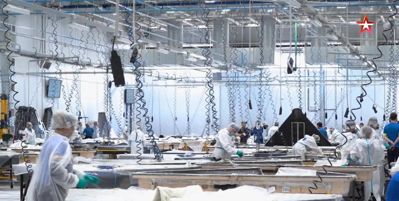 俄罗斯红星电视台报道的“天竺葵”自爆式攻击无人机工厂生产车间画面。