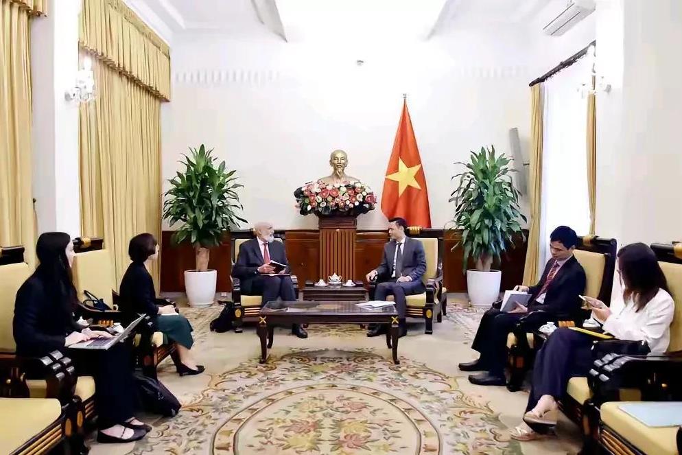 单独摆放东道主国国旗,是越南某部门官员接待他国客人的标志性设置!