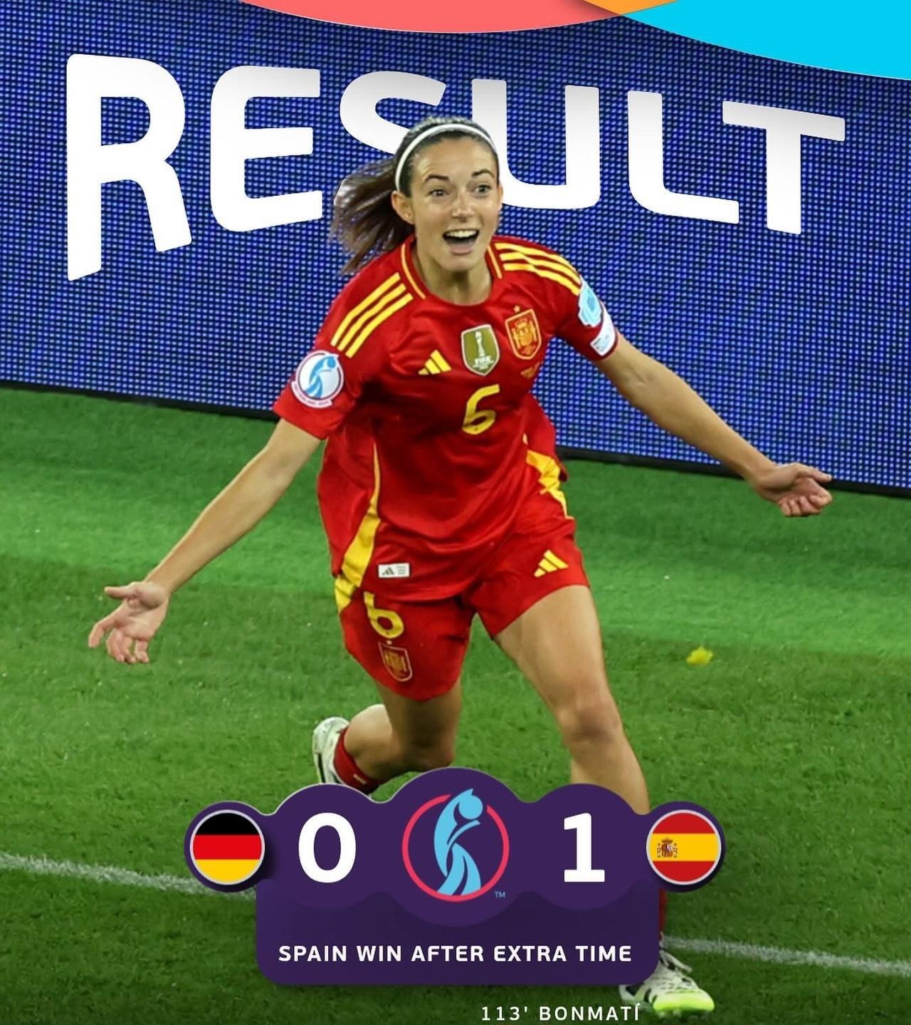 在此之前西班牙女足从未在欧洲杯上击败过德国队。 日期:7月27日周日 地点:圣雅各布公园球场,瑞士巴塞尔