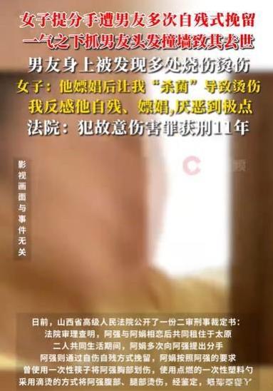 据潇湘晨报,7月27日报道,阿娟看着眼前的阿强,瞬间感到非常厌恶,她一想到自己的男友去找失足女,还撒谎,阿娟又再次提出了要分手。 他一边恳求着,一边撞着,一看阿强又寻生寻死的样子,阿娟内心又厌恶起来了,但这一次她狠下心来,要分手,她的眼前又浮现了阿强找失足女的画面。 看着阿强出事了,阿娟赶紧找到邻居一起把阿强送到医院,可这一次阿强却因此失去了生命。 然后医生在给阿强检查的过程中,发现阿强失去生命的原因,是因为头部撞墙导致的,但是他身上还有烫伤和划伤,这个需要阿娟作出解释。 阿娟看着阿强身上的伤,只好将他们之间的事情说出来。她说,那些烫伤是因为阿强找了失足女之后,觉得自己很脏,就恳求阿娟帮他灭菌,用开水烫他,导致他的腹部和腿部多处被烫伤,他还让阿娟拿筷子,划伤他的胸部。 如果阿强没有失去生命,如果阿娟没有抓着阿强的头发撞他四五下,如果阿强身上没有烫伤,大家或许都会劝阿娟赶紧离开阿强。 但是阿强撞墙失去生命了,身上又有烫伤,仅凭阿娟的一面之词,阿娟难以洗掉身上的嫌疑,不少人怀疑阿娟有家暴行为。 那么该如何认定这件事情呢? 1、 阿娟和阿强虽然还没有结婚,但阿强去找失足女,他的行为依然是违反法律规定的。 《民法典》第143条规定:具备下列条件的民事法律行为有效: (一)行为人具有相应的民事行为能力; (二)意思表示真实; (三)不违反法律、行政法规的强制规定,不违背公序良俗。 阿娟最终也因为自己的行为被判决有期徒刑11年。 那么你是如何看待阿强的行为呢?素材来源:潇湘晨报 7月27日