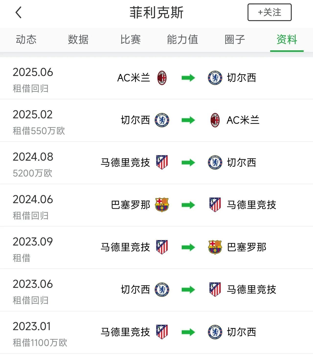 曾经的金童,25岁转会沙特?! 刚刚看到一则新闻,曾经的葡萄牙金童,被C罗钦点的葡萄牙国家队未来领军人菲利克斯,居然在25岁的年龄就要转会去利雅得胜利,实在是让人唏嘘不已! 菲利克斯的职业生涯开始于葡萄牙本菲卡俱乐部,2019年7月以1.272亿欧元转会至西班牙马德里竞技,就是放到现在这也是一个不可思议的高身价,随后从2023年1月被租借到切尔西开始,到2024年8月以5200万欧正式转会到切尔西,再到2025年6月从外租的AC米兰回归切尔西,三年的时间他辗转了切尔西、马德里竞技、巴萨、AC米兰等四家俱乐部,很难想象一名二十多点岁的职业球员,短时间如此频繁的不断租借、转会,其中2023年9月到2024年6月效力于巴萨时,出场44次10球6助,表现还算可圈可点,在其他几家俱乐部效力期间,由于时间太短,表现一般,没什么亮点; 现在菲利克斯将追随C罗加盟利雅得胜利,也算是某种意义上准备接C罗的班,但是毫无疑问一名25岁从顶级联赛来到沙特的球员,实力很难保持,也许他就是又一个足坛伤仲永!