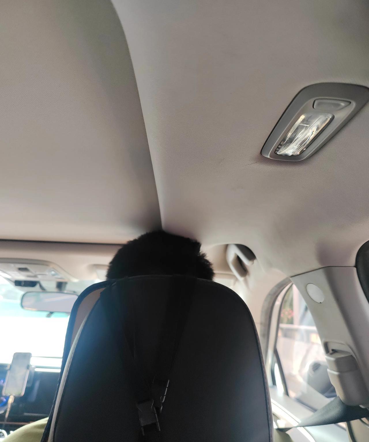 我儿子出行,太顶天立地了。 打车就顶着脑门,遇到小车,进去后还得微微一侧,后座向
