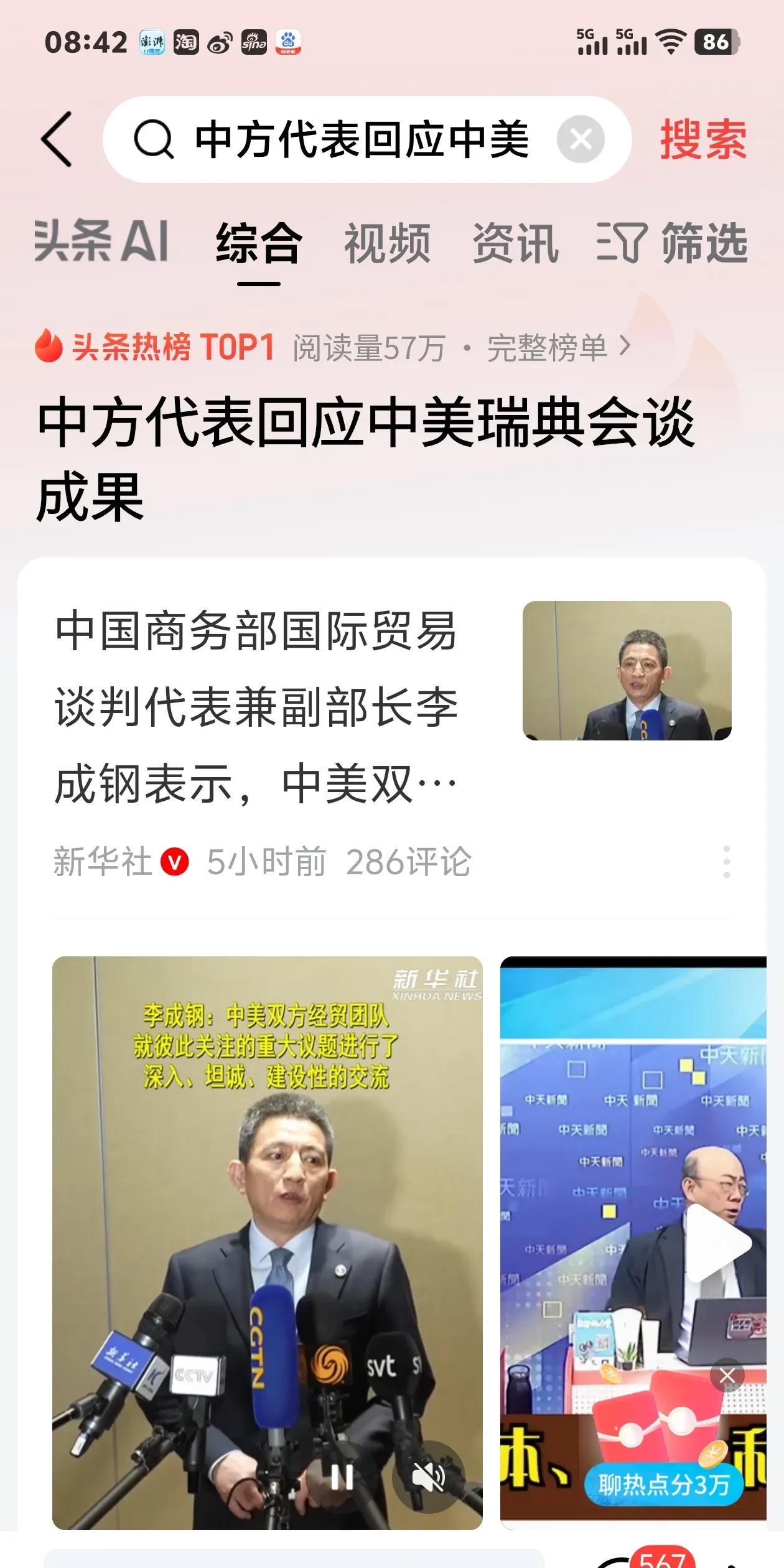 #中方代表回应中美瑞典会谈成果#中国商务部国际贸易谈判代表兼副部长李成钢29日晚