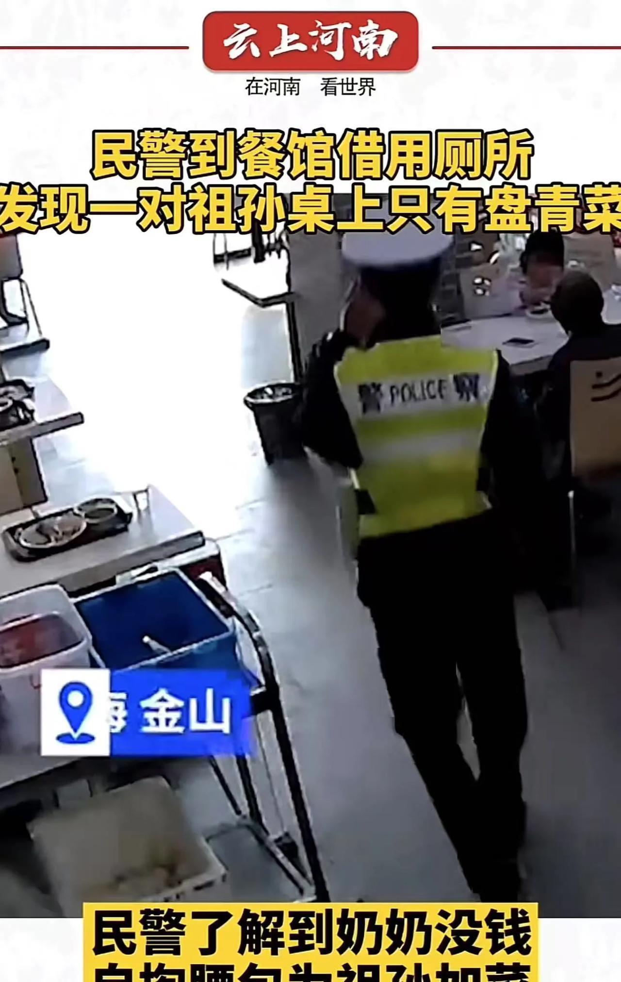 这个民警太暖了!民警到餐馆借用厕所,看到一对祖孙桌上只有一盘青菜。民警忍不住问老人怎么不给孩子点盘肉,老人一脸为难地说没钱。民警听后,接下来的举动让老人哽咽流泪!网友:不是因为这件衣服,而是他骨子里就是个善良的人! (来源:云上河南) 民警在路边执勤,维护交通秩序。突然,一阵尿急袭来,让他有些窘迫。环顾四周,他看到旁边有一家餐厅,便进去借用一下厕所。 从厕所出来后,民警不经意间路过一对祖孙的餐桌旁。出于职业的敏锐和内心的关切,他下意识地看了一眼餐桌,只见上面仅仅摆着一盘青菜和一碗米饭。 看着孩子瘦小的身躯,民警心里一阵揪痛。孩子正处于长身体的关键阶段,这样的饮食实在无法提供足够的营养。 于是,民警关切地问老人:“怎么只给孩子点一盘菜呀,她现在长身体,得给她点盘肉补充补充营养呢!” 老人听后,无奈地叹了一口气,说:“我没钱啊……” 民警愣了一下,然后毫不犹豫地转头对老板说道:“你给她们加两个菜,我帮他们付掉!” 老板听闻,赶忙点头应下。而老人受宠若惊,不敢相信这突如其来的善意。 可这还没完,民警注意到桌上只有一碗米饭,显然老人自己还没吃饭。他又嘱咐老板给老人也打一碗饭,还细心地说道:“老人家,您也一起吃,别饿着。” 老人看着眼前热气腾腾的荤菜和香喷喷的饭,眼眶瞬间湿润了,泪水在眼眶里打转,嘴唇微微颤抖着,却一句话也说不出来。 而民警只是微笑着说了一句“慢慢吃”,便默默地转身离开了,只留下一个温暖而又坚毅的背影。 什么是伟大,我个人觉得善良就是伟大,其他的都只是虚有其表而已。 这位民警,他不仅是在维护城市的治安,更是在用自己的一举一动传递着人间的温情与善意。 他用自己的行动诠释着“人民警察为人民”的深刻内涵。他的善举,让我们看到了人性的美好与光辉。他是当之无愧的城市守护者,更是我们心中最可爱、最可敬的人!#头号创作者激励计划#