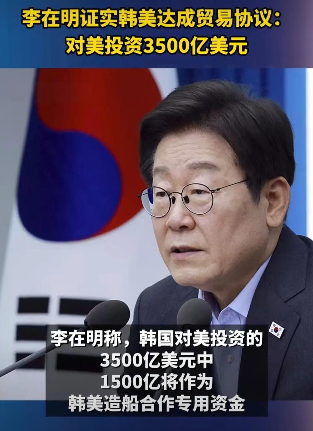 特朗普的关税大业再下一城:韩国向美国全面开放,关税为零;韩对美投资3500亿;美对韩收15%的关税。 踩着点,在关税新政前的最后一天,双方成议,特朗普也算给这个并不亲美的李在明面子了,而李在明用跟日本相同的条件签成对美贸易协议,总算取得了上任后的第一项外交成绩。 15%的关税,这是盟友的待遇,美国还拿韩国当盟友,虽然是并不亲美的李在明执政,但李在明毕竟同意韩国对美国零关税,全面开放,满足了特朗普的核心诉求。 明天,也就是8月1日,世界就进入特朗普塑造的新时代了。