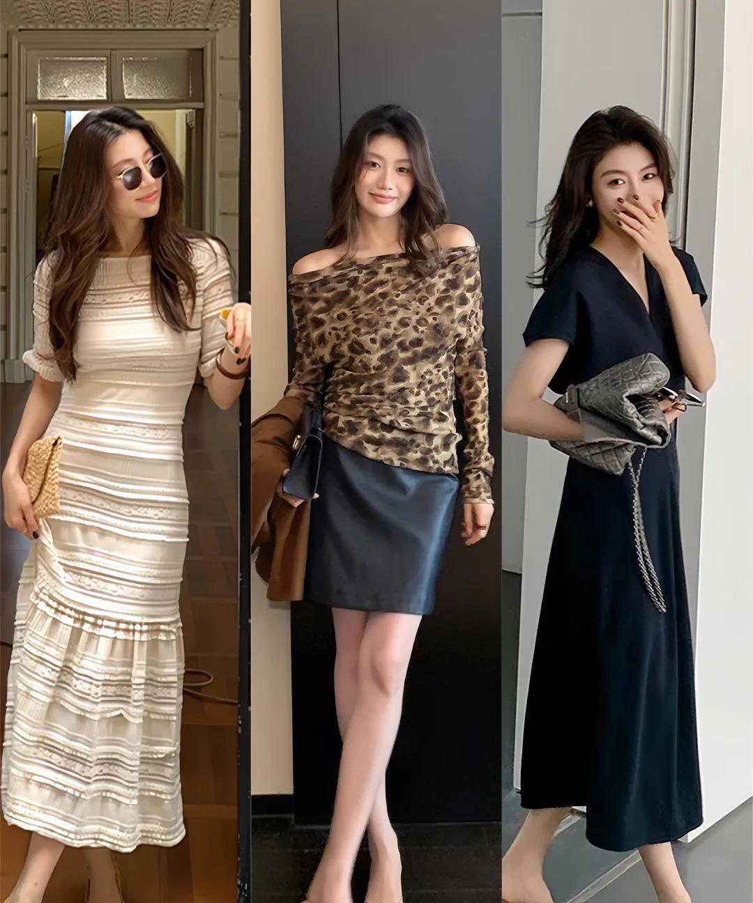 豹纹元素也是日常穿搭一道亮丽的风景线! 它野性又充满着魅力,日常出街可以选择一条豹纹的半身裙,长款宽松版型不挑身材,上衣选择黑色简洁大方。 或者是一件黑色的上衣,挑选一字肩露出锁骨女人味十足。 下装可以选择短款的半身裙,也很适合熟龄的姐妹们,魅力十足。