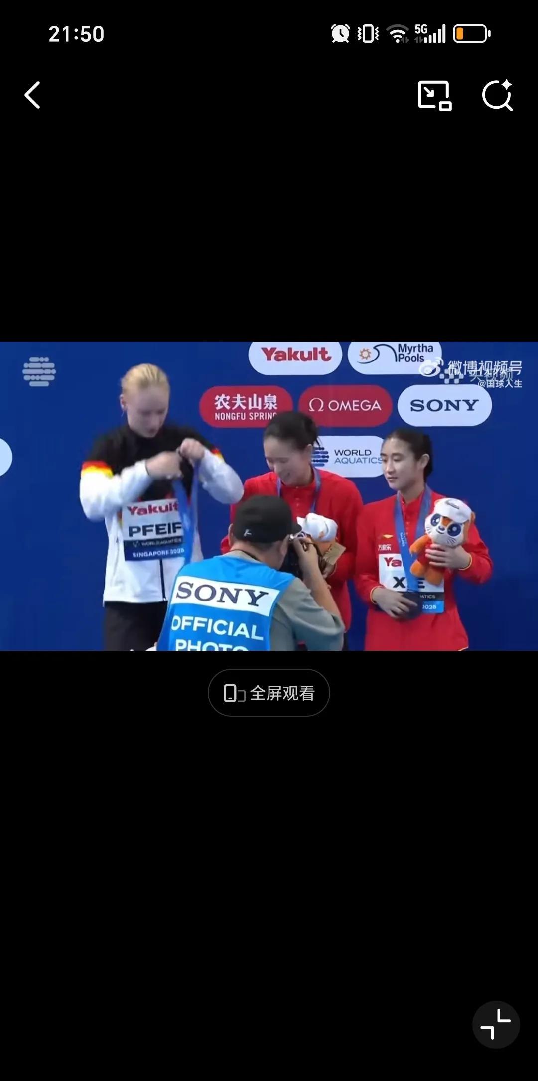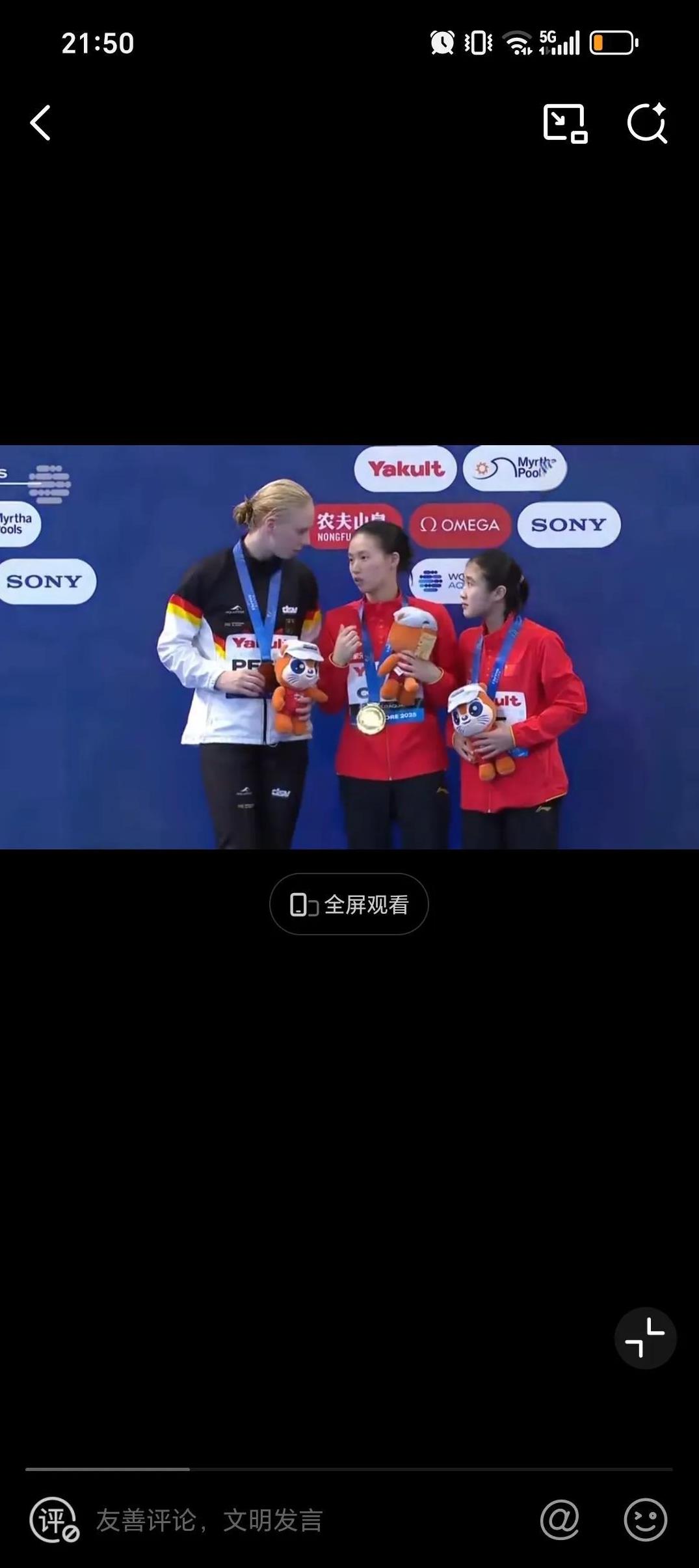 7月31日世锦赛颁奖典礼银牌和铜牌还发错运动员了,是不是习惯我国运动员跳水十米台一直金牌和银牌这次颁奖嘉宾也没多想就发给谢佩铃了。陈芋汐发现了然后暖心和德国运动员沟通,最后谢佩铃和德国运动员把奖牌换过来了。两个新人拿奖牌,不知道错了,这样的事情还得是拿奖老手陈芋汐来给发现。 一个小失误但是说明了运动员还是关系都很好,陈芋汐英语也是很专业,跳水和学习两不误。
