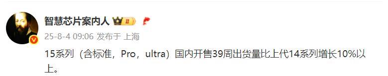 这是小米15系列同比数据 1、注意这个数据是指小米15系列开售39周以后,同比小