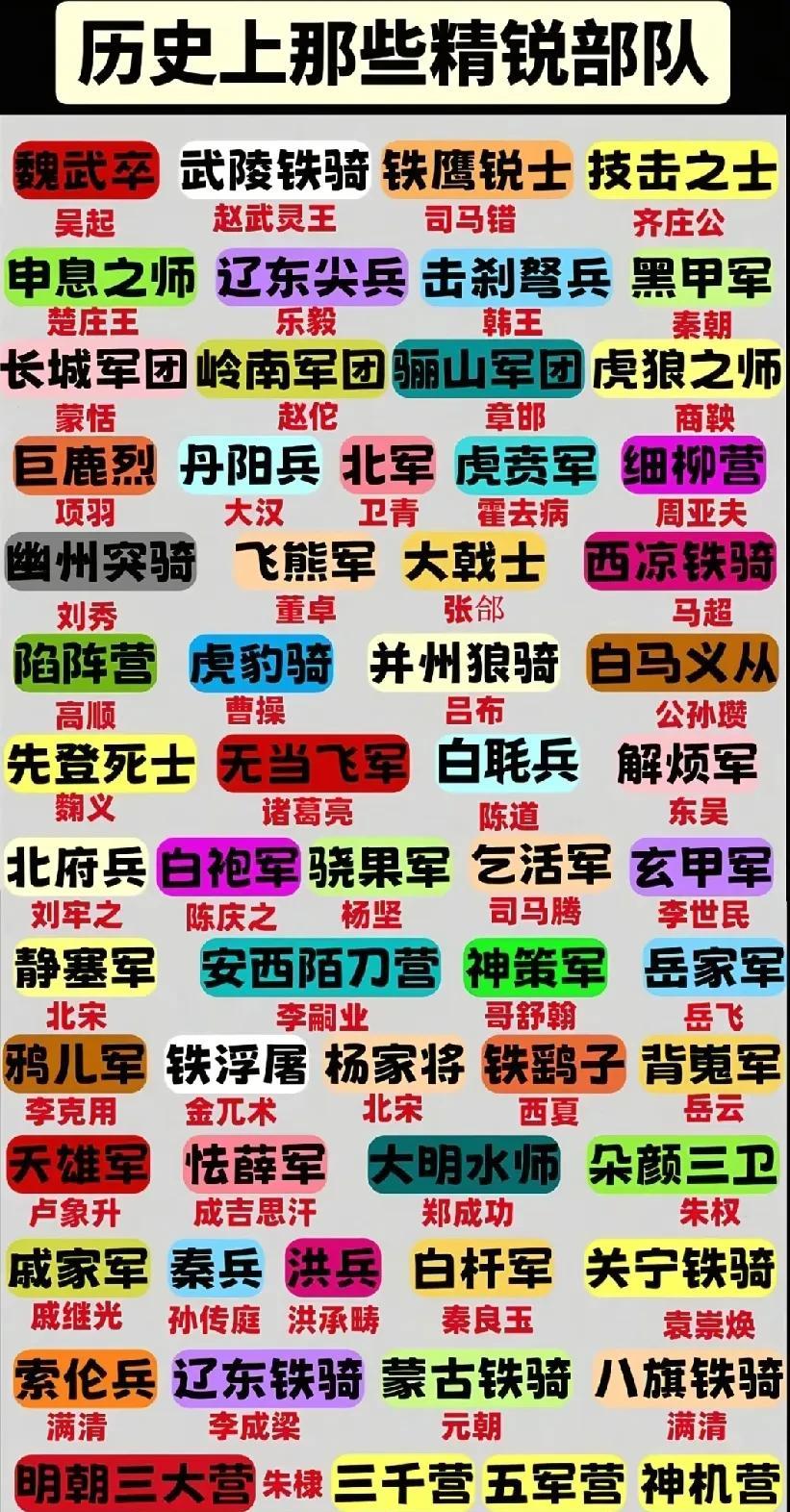 历史上那些精锐部队,个个都是战斗力爆表的存在,说出你认为最强的。个人偏重 于战国的魏武卒,吴起率领魏武卒南征北战,创下“大战七十二,全胜六十四,其余均解”的惊人战绩。魏武卒的选拔标准极其苛刻,纪律严明,待遇优厚,训练有素,编制灵活。