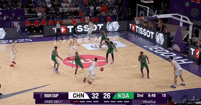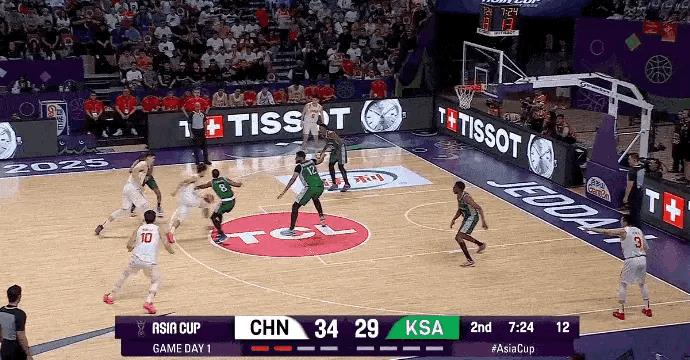 中国男篮第二节越战越勇,半节领先10分,胡金秋大步流星,跟进爆扣,目前只有