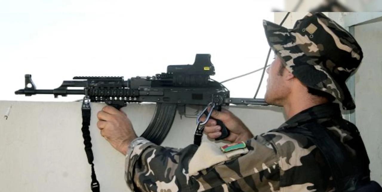 前阿富汗警察部队与塞尔维亚M-70AB3(AKMS)步枪。