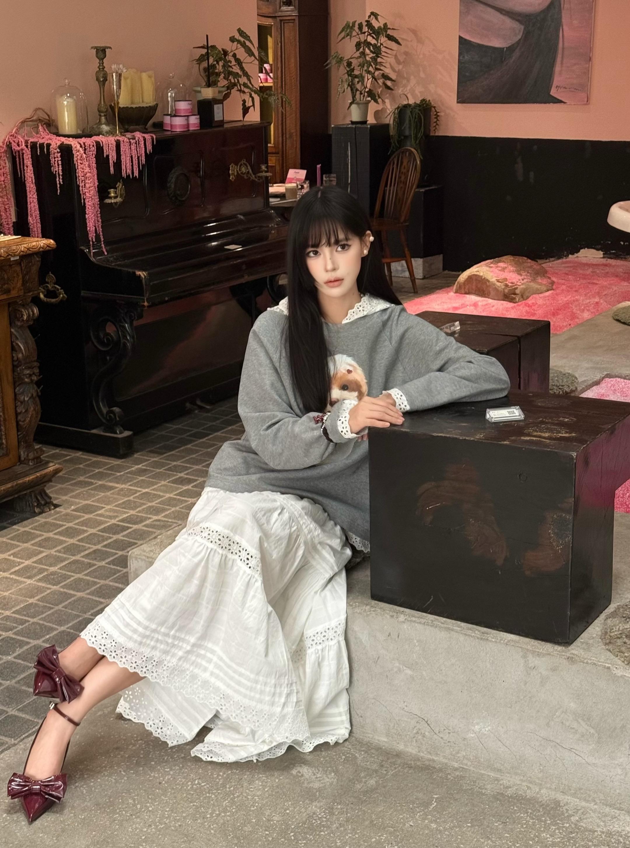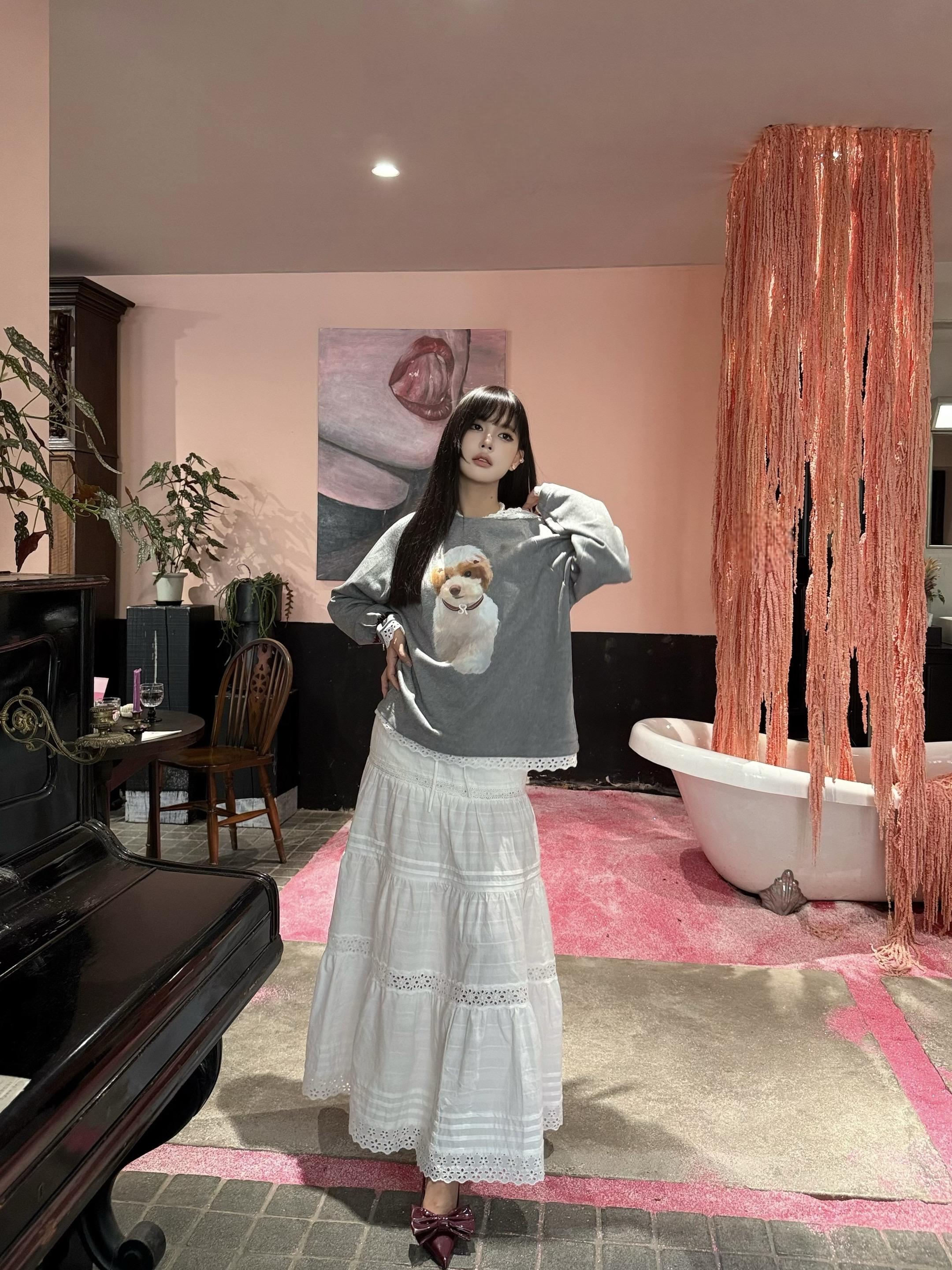 张予曦,白色镂空蕾丝裙,清新大气