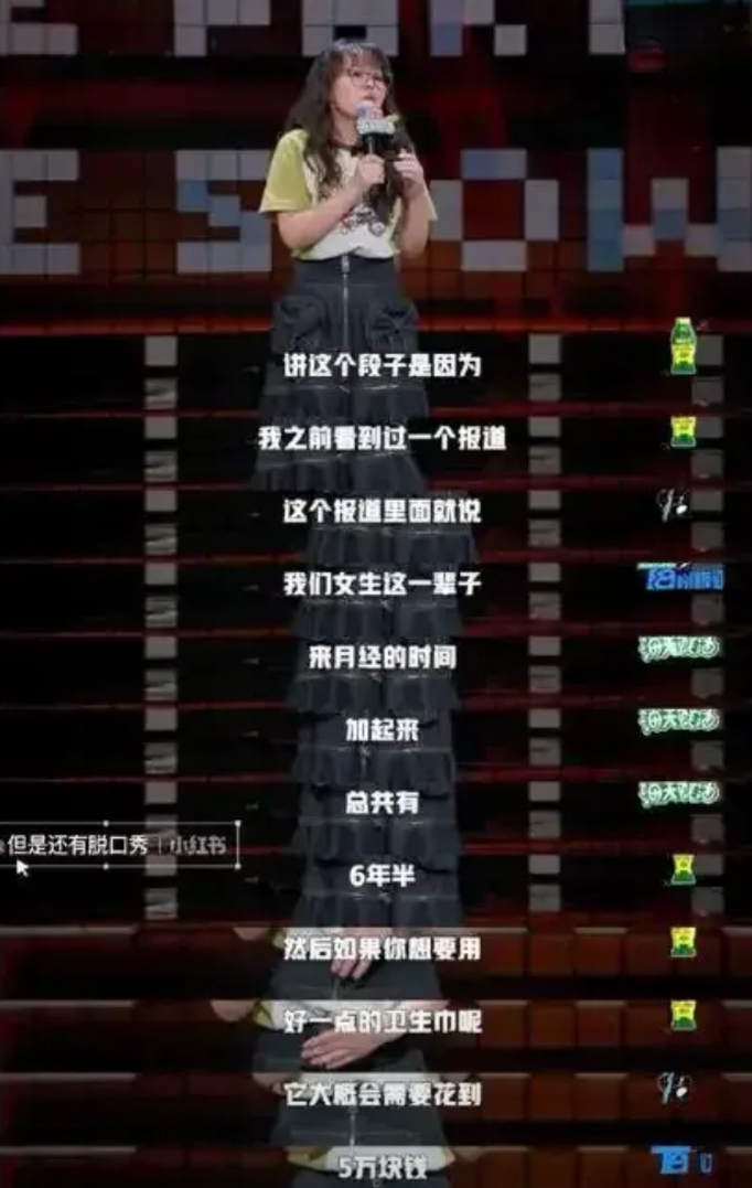 今年的脱口秀上面,女选手一个比一个劲爆,各种女权,卫生巾,月经,的段子。 估计好