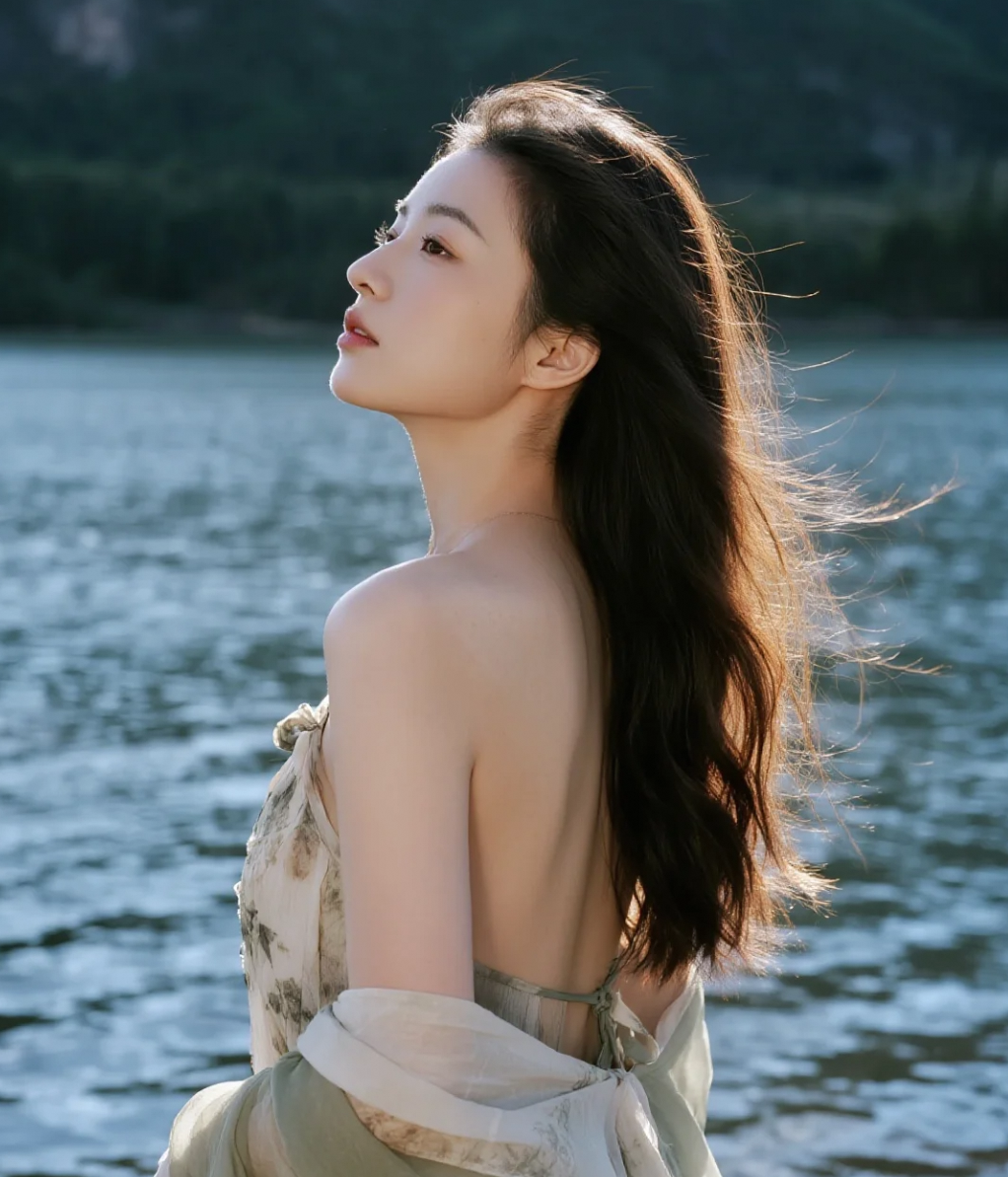 波光粼粼闪烁,映照她内心澄澈的喜悦
