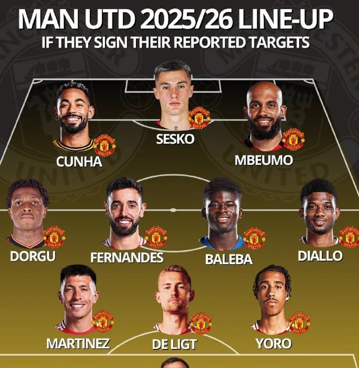 曼联这套阵容,新赛季能否争前四! 在官宣谢什科之后,曼联前场三叉戟终于成型,接下来他们还可能引进中场和门将,目标分别是巴莱巴和多纳鲁马。其中巴莱巴效力于布莱顿,是目前英超最炙手可热的年轻中场之一,才21岁的巴莱巴,几乎没有短板,他不仅防守强悍,还能带球突进,他的身价很可能超过1亿英镑。好在巴莱巴还很年轻,曼联买下他,至少可以用10年。 至于多纳鲁马,他和大巴黎的续约已经停滞,夏窗很大机会离开,而曼联正是他的下家之一。除了工资要求高之外,多纳鲁马几乎没有缺点,他绝对是能够提升曼联实力的少数几名门将之一。要是能拿下多纳鲁马,曼联的阵容几乎没有短板了。 新赛季,谢什科、库尼亚和姆贝乌莫将搭档首发,中场4人组是多古、费尔南德斯、巴莱巴和迪亚洛,后防是马丁内斯、德里赫特和约罗,门将则是多纳鲁马,如果这是曼联的主力阵容,相信新赛季他们有机会竞争前四!