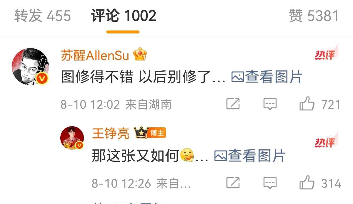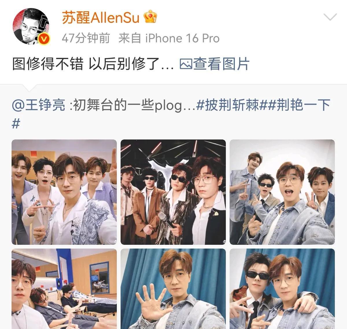 王铮亮发披荆斩棘初舞台合照,苏醒被P成可爱大眼萌:图修得不错,以后别修了… 王铮