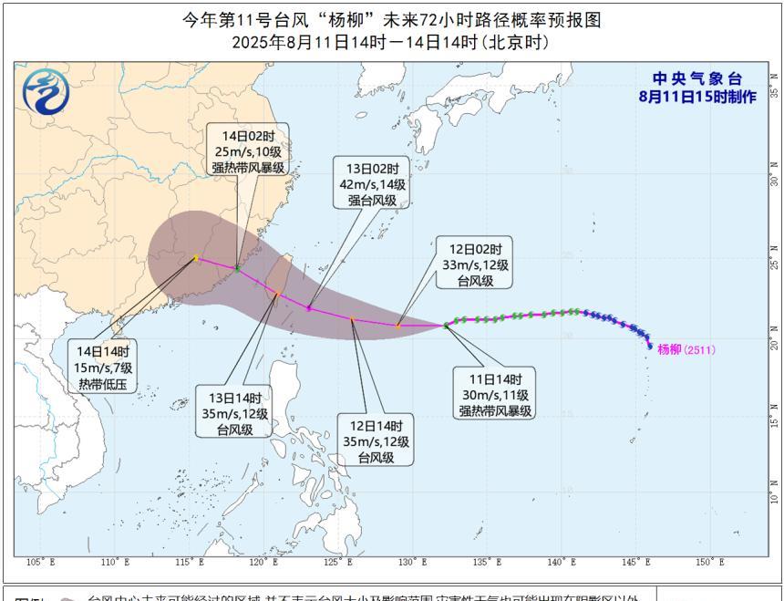 台风“杨柳”强度越强越偏西,13日起风雨影响福建和广东!今天(11日)白天,从早