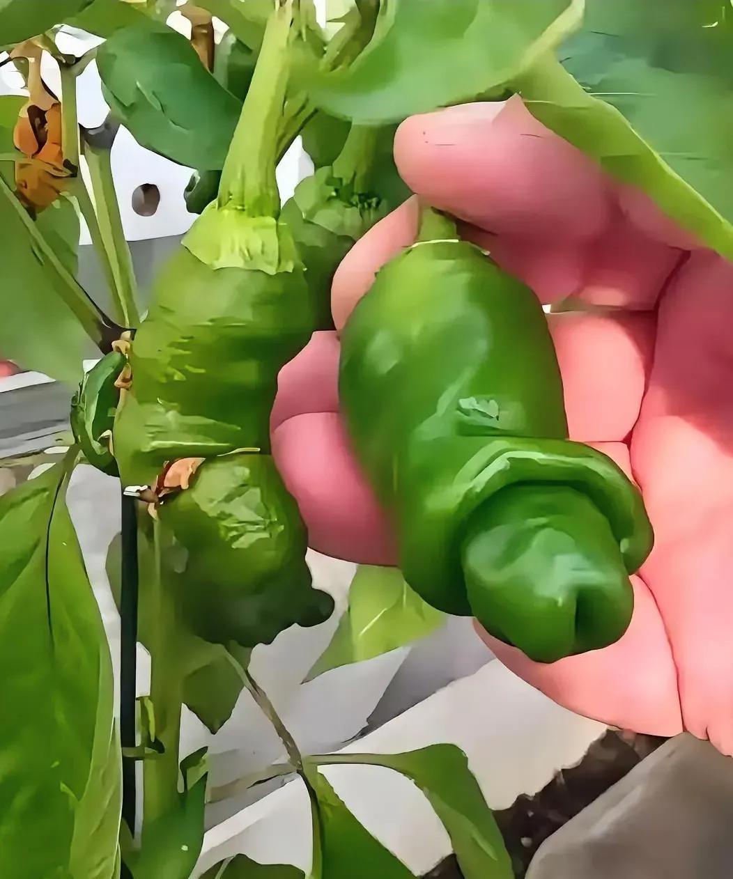 在地里面去摘辣椒,居然还能够摘到这么奇形怪状的,你敢吃吗? 网友说,昨天她去地里面摘辣椒,忽然间看到一个辣椒长这样。开始,她晃眼看一下,没觉得什么,再仔细看,忽然脸就红了,她说这不是AI,也不是P的图片,就是真实的。 她说她不关心别的什么,就是关心这种辣椒能不能够吃,是不是基因变异了,或者说是打了农药所致啊?她说由于家里面的辣椒生虫,只是少少的喷了那么一次药。 长得奇形怪状的辣椒能够吃吗?你敢吃?
