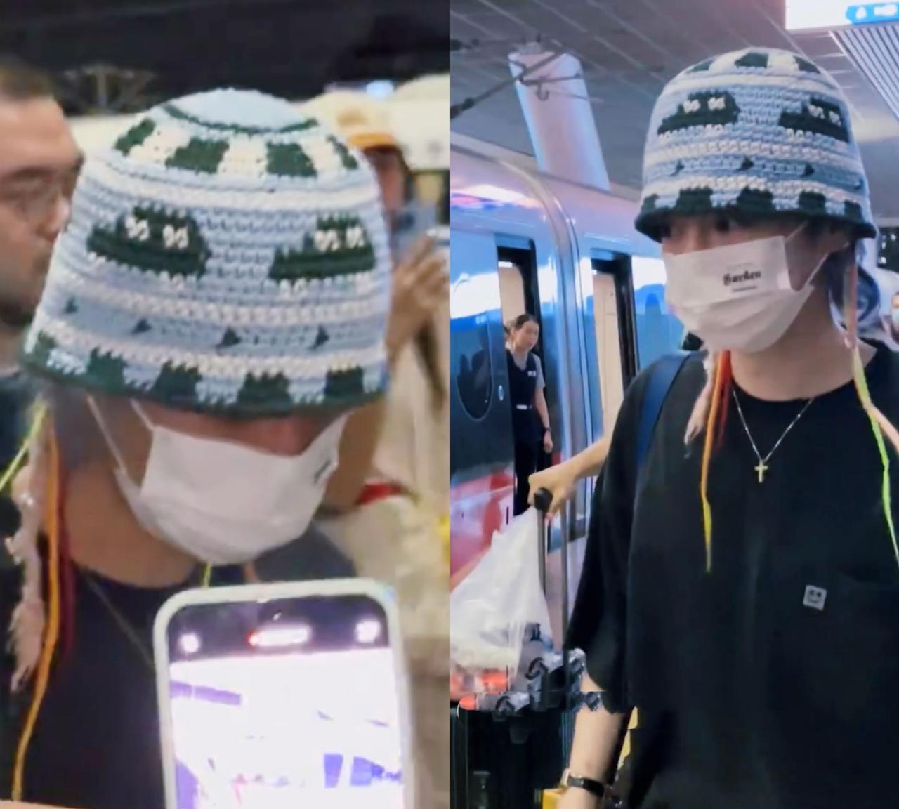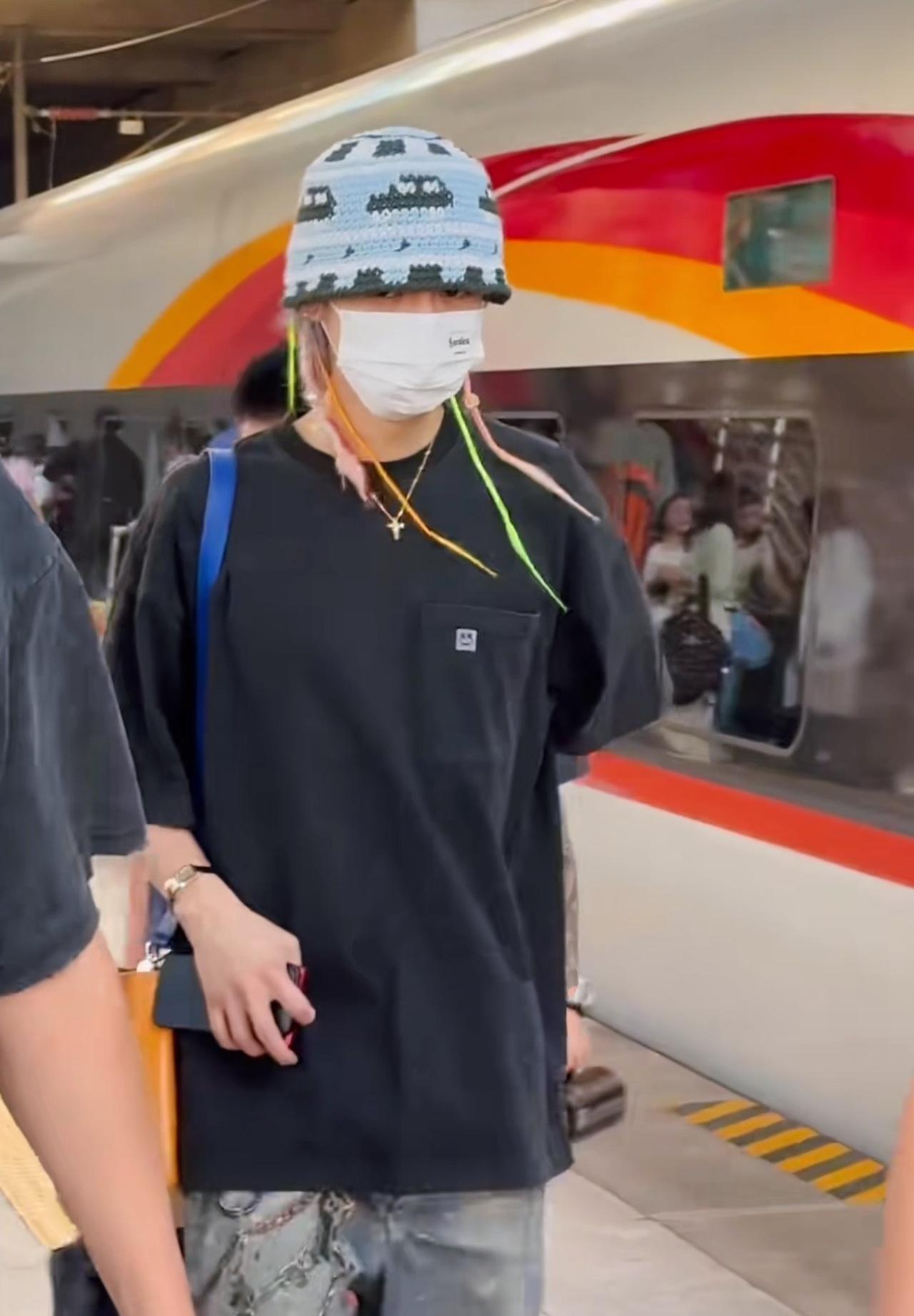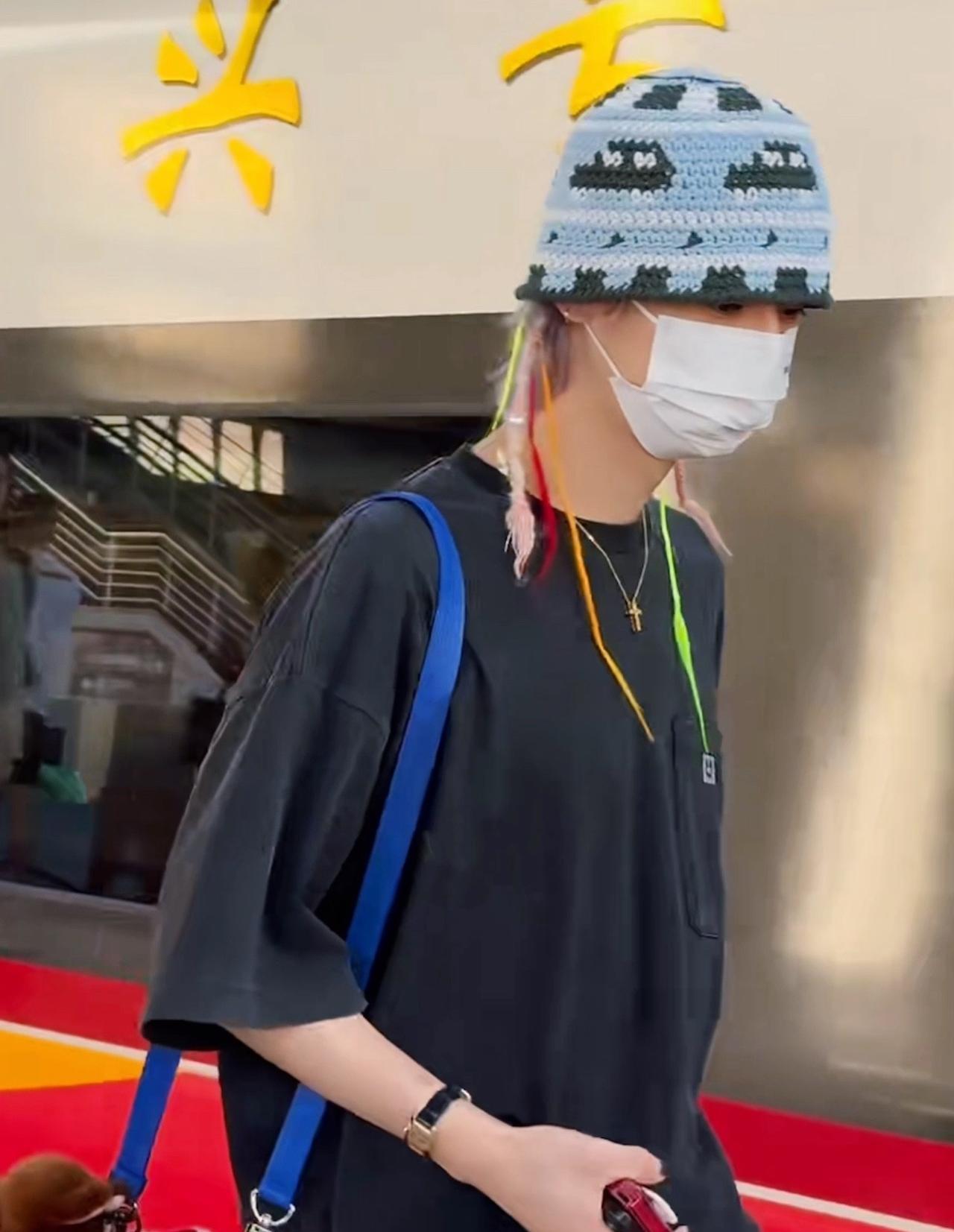 鹿晗戴毛线帽坐高铁,打扮太潮了。鹿晗坐高铁去武汉,这次穿得可真潮。 黑色T恤搭配