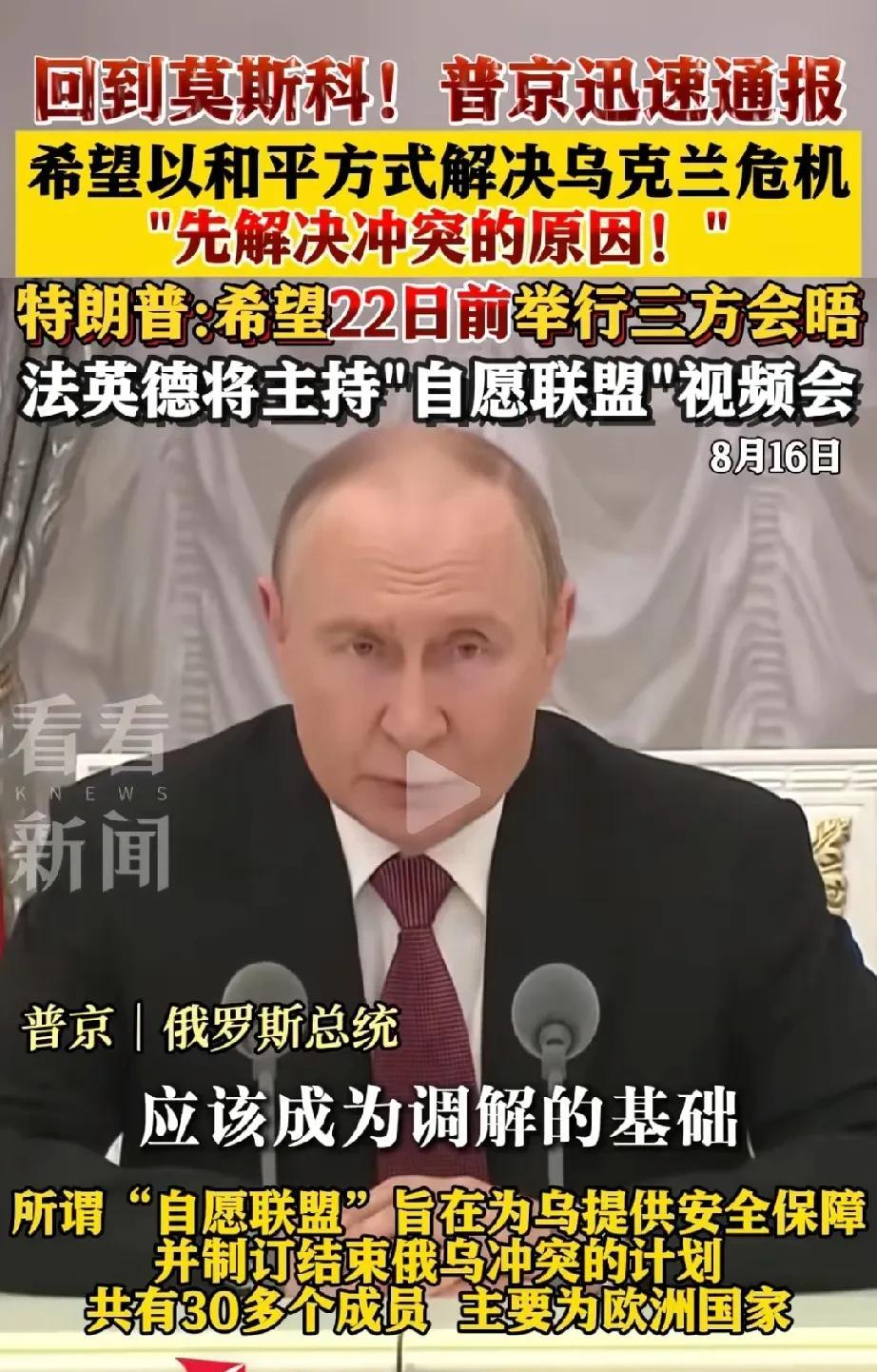 普京安全抵俄罗斯! 特朗普又希望22日举行三方见面。
