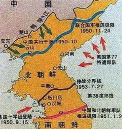 1950年,以美国为首的联合国军介入朝鲜战争,直逼中朝边境,中国志愿军在装备落后、后勤补给困难的情况下毅然跨过鸭绿江。