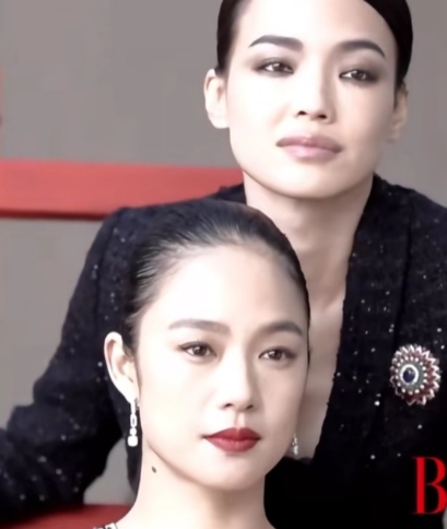 神合影,你先看到谁? 这个拍摄明显舒淇给周韵让妆了。 没办法,《一步之遥》姜文导演,周韵是导演妻子。只能说舒淇大气、会做人。 造型、口红颜色、发型,站位,全方位让妆给导演夫人焦点排面。