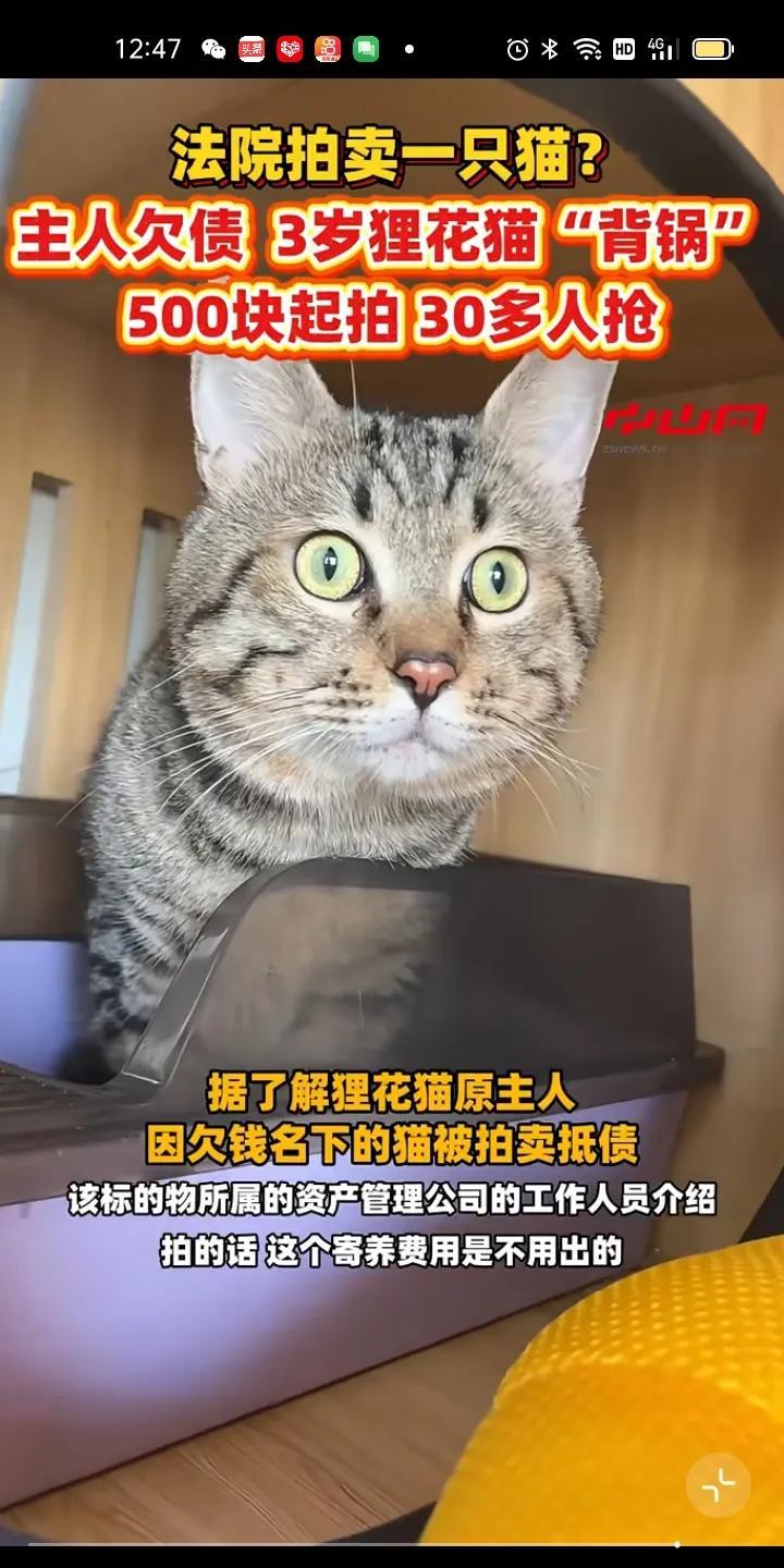 这猫突然就火了! 主人欠债,3岁狸花猫“背锅” 500块起拍,1000多人抢,