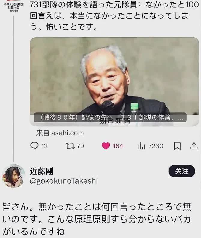 日本政客、自民党潜在的首相候选人高市早苗在参拜完众鬼之后,对着媒体大放厥词:“参拜为国捐躯的英灵,是我的自由”,好一派大义凛危的架势。 每逢8月15日,日本投降纪念日,日本内阁成员都会大阵仗出动集体拜鬼,有时,连那个傀儡国王和政府首相也亲自到场参拜,然后说一番糊弄活人的鬼话,什么“以历史为鉴,表达和平的祈愿”,像高市早苗直截了当的大实话,也确实有勇气。 既然干涉不了你们的自由,为嘛要干涉中国人的自由?日本处务省多次通过不同方式表达了他们的“忧虑”,对电影《南京照相馆》、《东极岛》的上映表达了不满,认为“没有可靠的史料支撑,容易对下一代误导,对两国世代友好关系没有正面教导意义”。但请高市早苗这样的政客回答:看不看电影是中国人的自由,你们急什么? 眼见着数百万“犬吠”,唬不倒中国的主流民意,牵绳子的主人亲自下场了,日本驻华使馆以及中国驻日外交机构均接到日本政府不同的指令,日本驻华使馆抗议中国政府纵容中国人“篡改历史”,将“旧日军第131防疫部队”改称为“细菌部队”,中国驻日本外交机构每天均能接到不同形式抗议报告。 我们早就说过,也不要指望日本人对历史罪恶“反省”和“道歉”了,第一要务应开展广泛的“灭犬”运动。