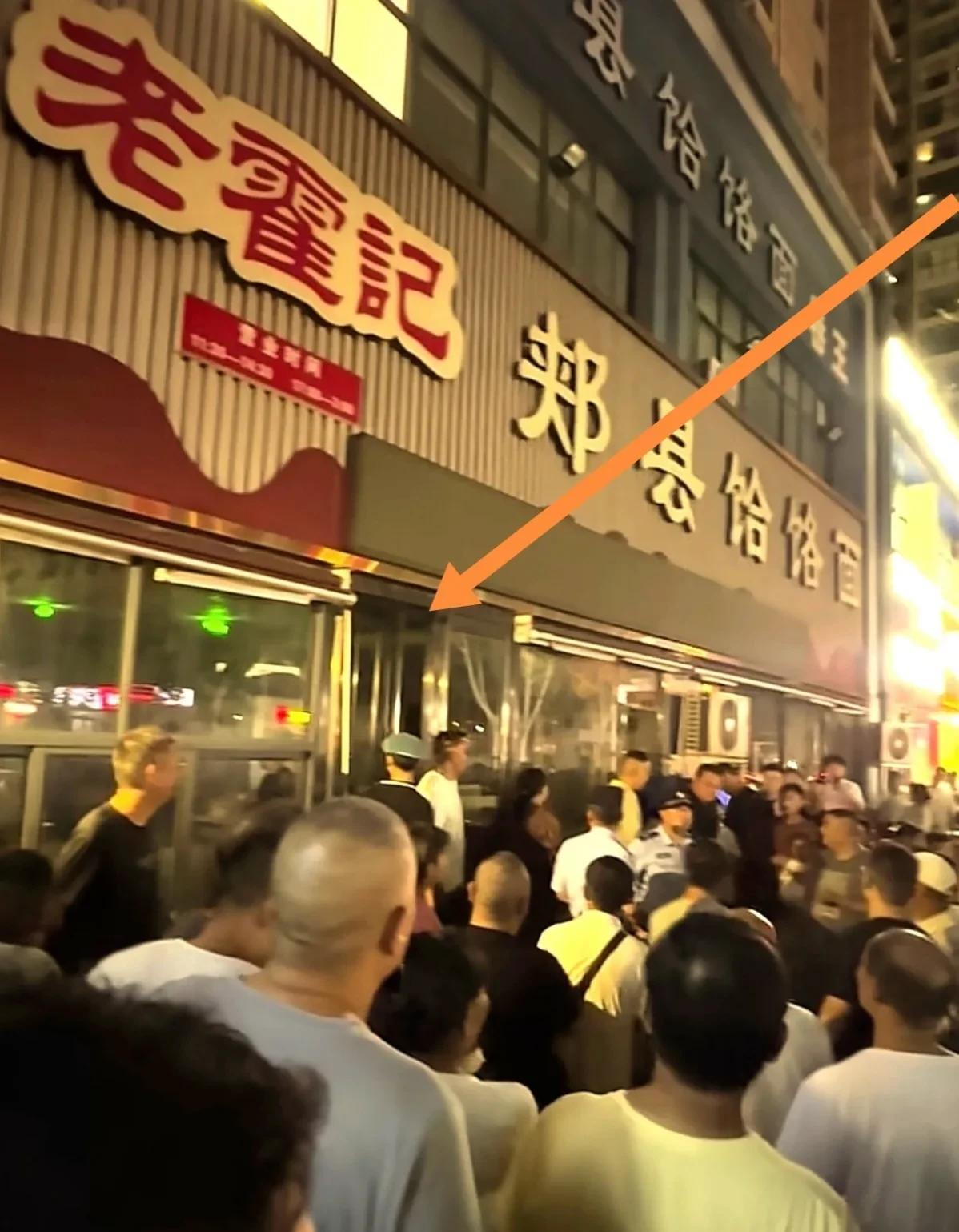 郑州饸络面馆后续,现在已不让人靠近,有穿红马甲的工作人员维护秩序! 今天网友拍到