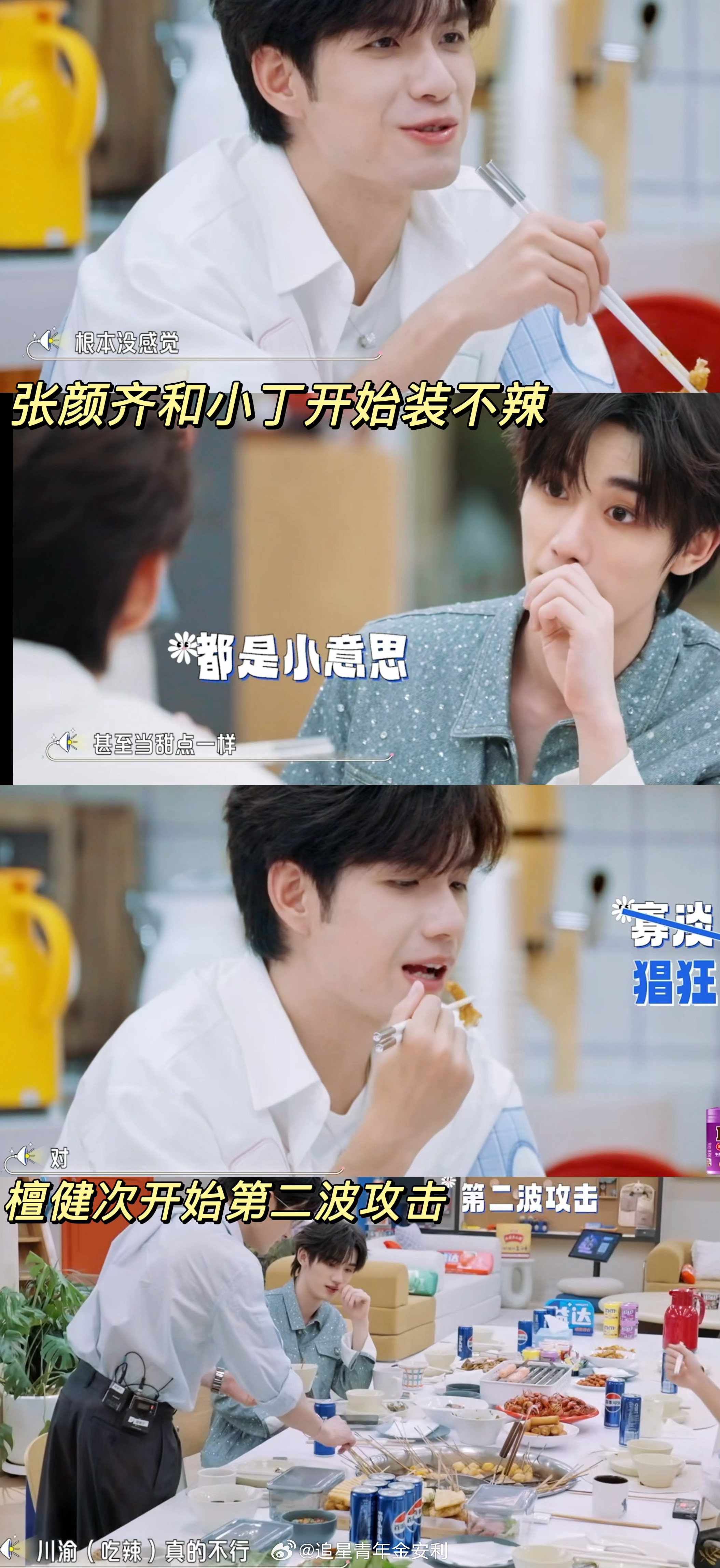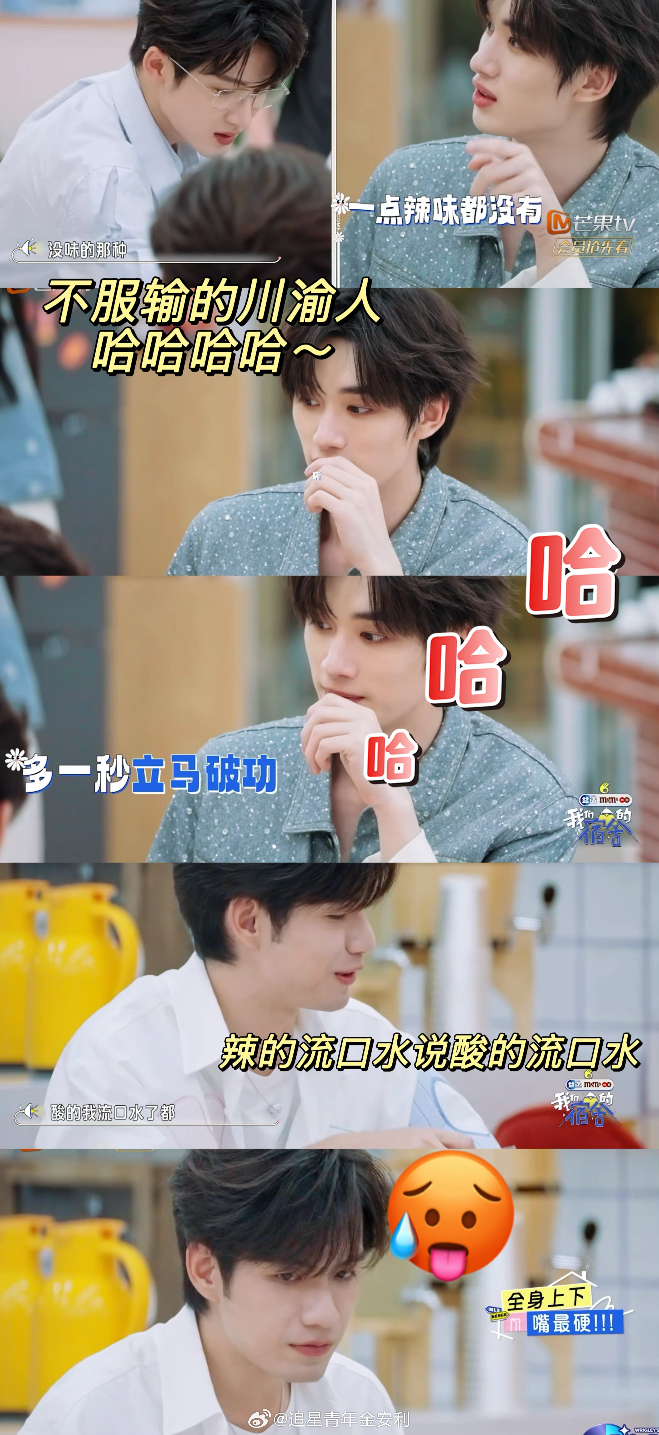 丁程鑫正是爱火拼的年纪不得不说,《我们的宿舍》往期嘉宾吃尽了节目“黑利”[哈哈]炒个菜能被油烟呛到即兴表演咳嗽rap,粉丝在线急呼:“油烟机快醒醒,这班你得上啊[二哈]”幸亏节目组拉来了美的油烟机,及时上线把厨房变成无烟区,张颜齐守护重庆人吃辣的尊严这期“吃辣比拼”估计得在“浓烟”里拍了[笑而不语]张颜齐一道狼牙土豆把我香晕了🥔哈哈哈谁能想到川渝人居然被自己做的狼牙土豆背刺了,当檀健次质疑重庆人吃辣能力,张颜齐和丁程鑫顿时整齐划一说不辣,一点都不辣,其实已经辣的嘶哈🥵哈哈哈他俩人全身上下嘴最硬,辣不了一点,川渝人吃辣能力不容置疑,还好新烟机给力,不然这一桌重油重辣的菜,厨后卫生就有得搞了,这样一想,吴泽林熟练地给油烟机“吊水”清洁动作看起来还有一丝窃喜是怎么回事[允悲]檀健次回应好6群没他何炅高瀚宇杨迪集体被呛
