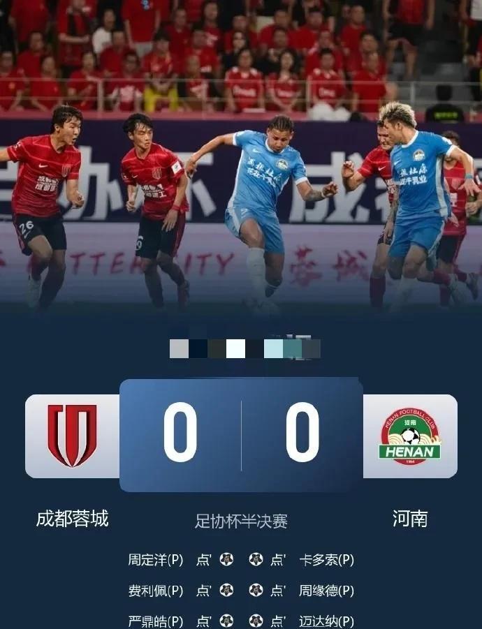 杜康战胜了五粮液,足协杯半决赛河南点球4:3淘汰成都蓉城历史性杀入足协杯决赛。本赛季河南淘汰了浙江,上海申花,成都蓉城韧劲十足,今年的大黑马!!
