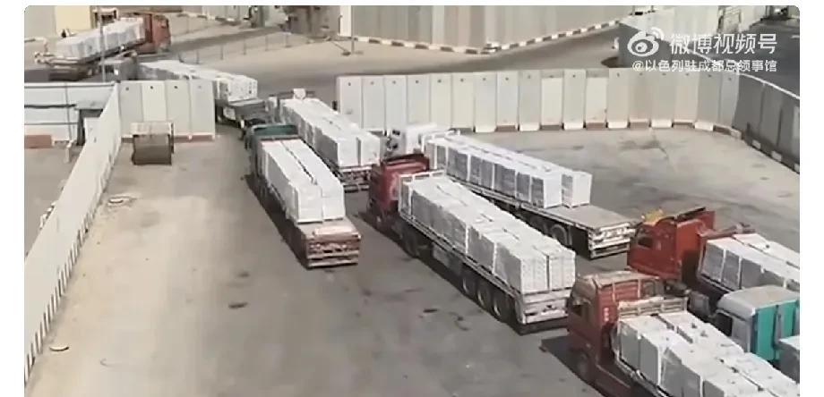 以色列驻成都领事馆微博报道称, 每天,数百辆卡车在联合国和国际组织的协调下,从以