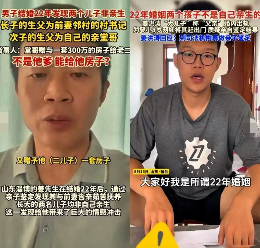 结婚22年,男子愣是没有想到自己的两个儿子都不是自己的,自己完全就是个冤大头,如今更是为了自己的那点财产,依旧是死缠烂打,老大不同意做亲子鉴定,为了就是看中父亲的财产。