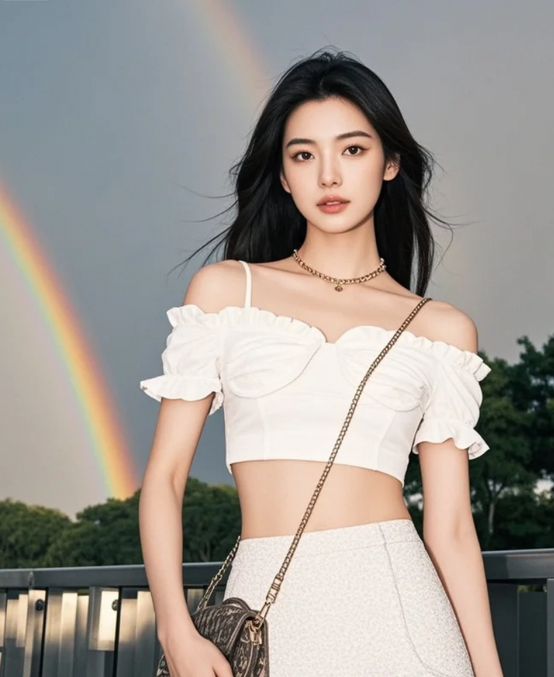 云破天光,虹桥如练,她的侧影是雨后最动人的诗行。