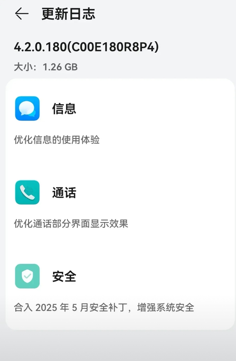 五年前的华为Mate,接到1G多的升级提醒,有点惊喜。 今天手里的华为Mate40突然收到提醒,看到有1.26G的更新,有点惊喜,还以为会是鸿蒙Next;结果进去发现是158升到180版本,这么大的更新,也就在信息、通话和安全方面有点变动。 其实,对于这部五年前的华为Mate40,相信大家都不陌生,麒麟9000系列处理器一直是国产芯片的巅峰,而且在各个配置方面都很均衡,可惜后边卡了脖子。 前几天,看到余总的采访,谈到华为Mate40很有希望升级纯血版鸿蒙Next,很是激动,今年本来想换掉的手机感觉还能再坚持到大版本的到来。 最后,也想问一下,还有在用华为Mate40及之前的手机的朋友吗?