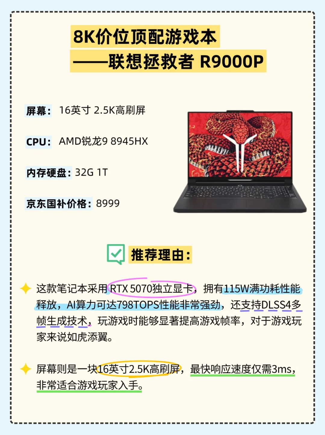 👉8K价位顶配游戏本——联想 拯救者R9000P