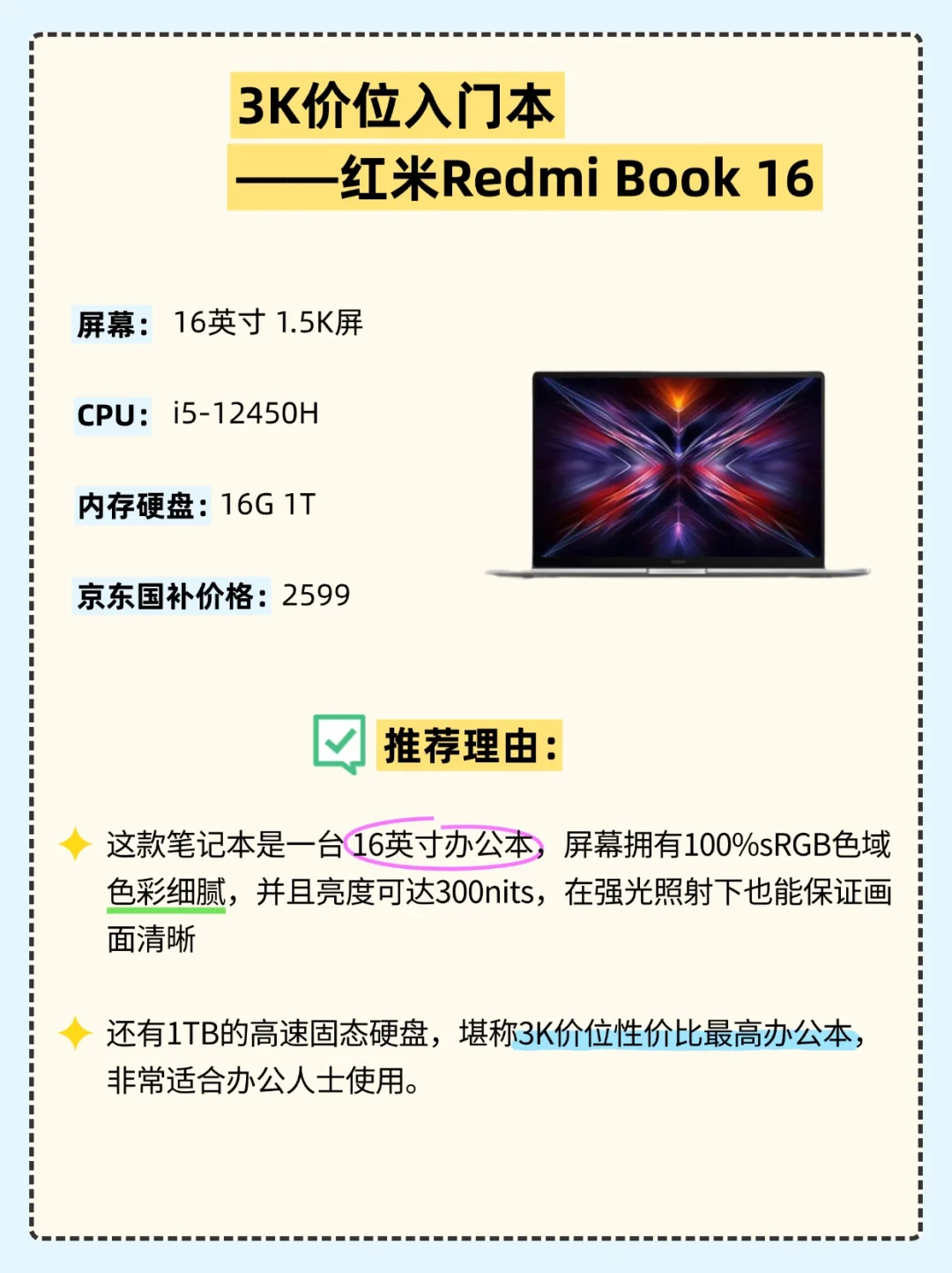 👉3K价位入门本——红米Redmi Book 16